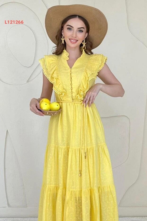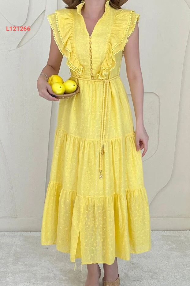 استمتعي بأناقة لا مثيل لها مع فستان Elbee Fashion الأصفر الخردلي المزين بالكشكش والأزرار! صُنع من أقمشة عالية الجودة تمنحك راحة طوال اليوم، بينما يضيف التصميم الرقيق لمسة من التألق والأنوثة إلى إطلالتك. اجعلي كل مناسبة مميزة مع هذا الفستان الجذاب!