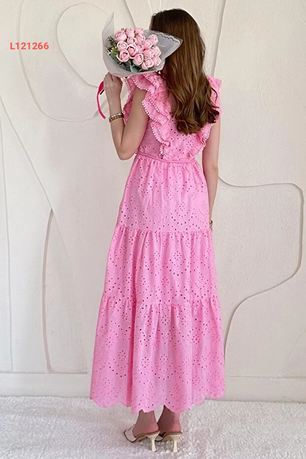 Elbee Fashion Woman Pembe Fırfırlı Düğmeli Elbise