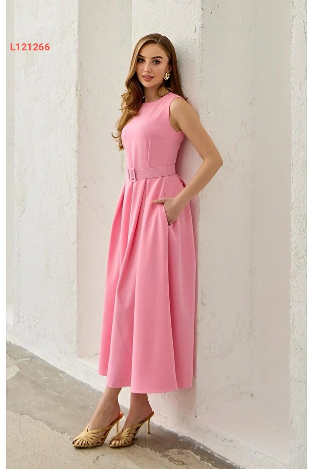 اجذبي الأنظار مع فستان Elbee Fashion الوردية القماش، المصمم بتفاصيل عنق هالتير الأنيق وقصة الكلوش الرائجة. يتميز هذا الفستان بجاذبية أنثوية تمنحك إطلالة ساحرة تناسب المناسبات المتنوعة، حيث يوفر لكِ الراحة والأناقة في نفس الوقت. ارتدي هذا الفستان لتتميزي دائماً بأناقتك وإشراقتك.