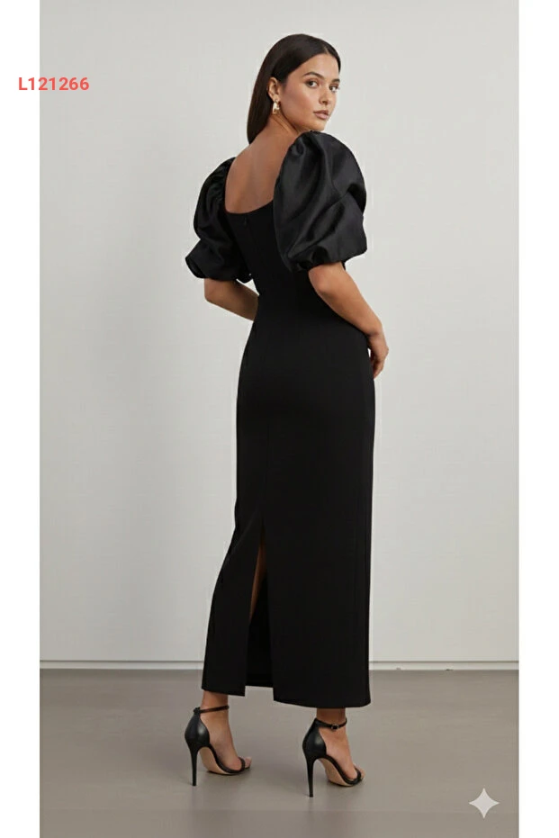 تألقي بأناقة مع فستان إلبي للأزياء، المصنوع من الساتان الفاخر والذي يتميز بأكمام بالون اللافتة وتفاصيل اللؤلؤ الرائعة. يجمع هذا الفستان بين الأنوثة والحداثة، مما يجعله الخيار المثالي لأي مناسبة خاصة حيث ستستحوذين على الأنظار بأناقتك المطلقة.