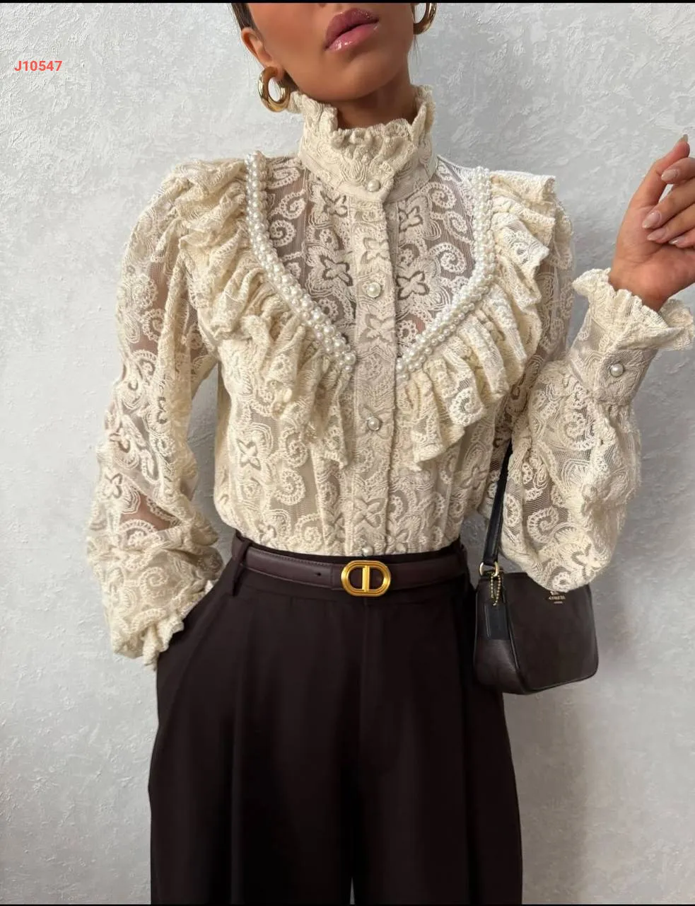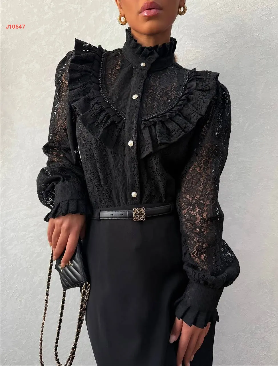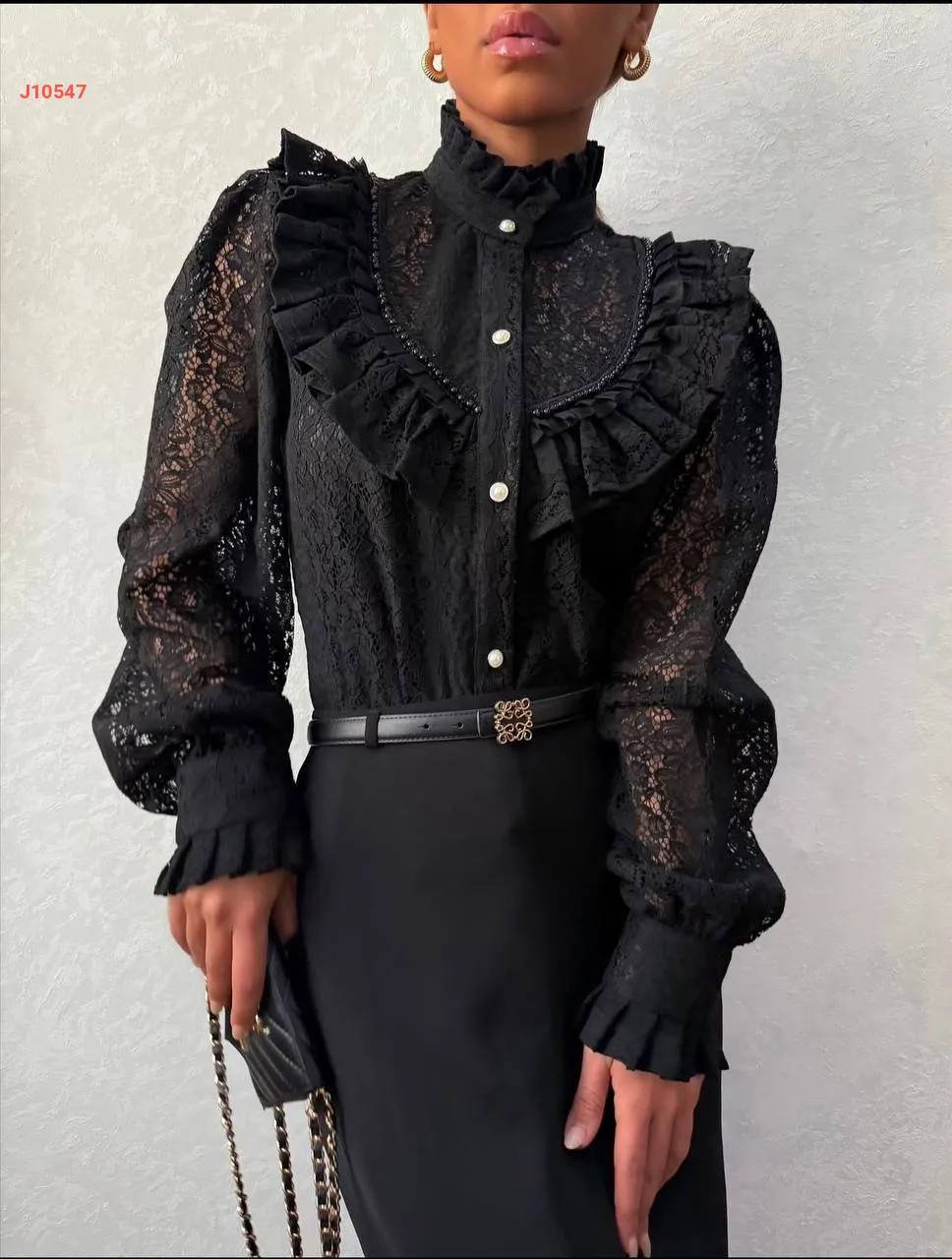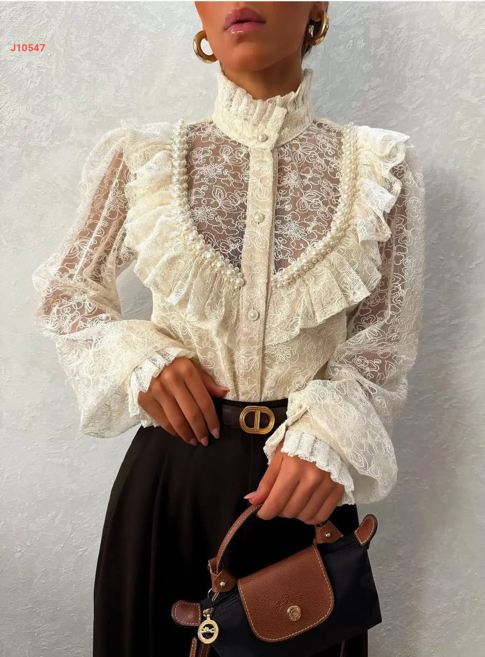قميص دانتيل أنيق مطرز لولو