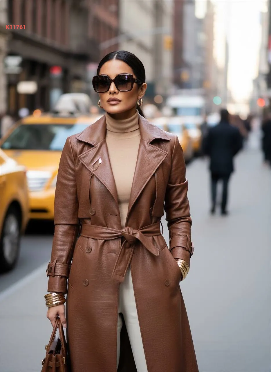 ترانشكوت جلد أنيق مع زنار