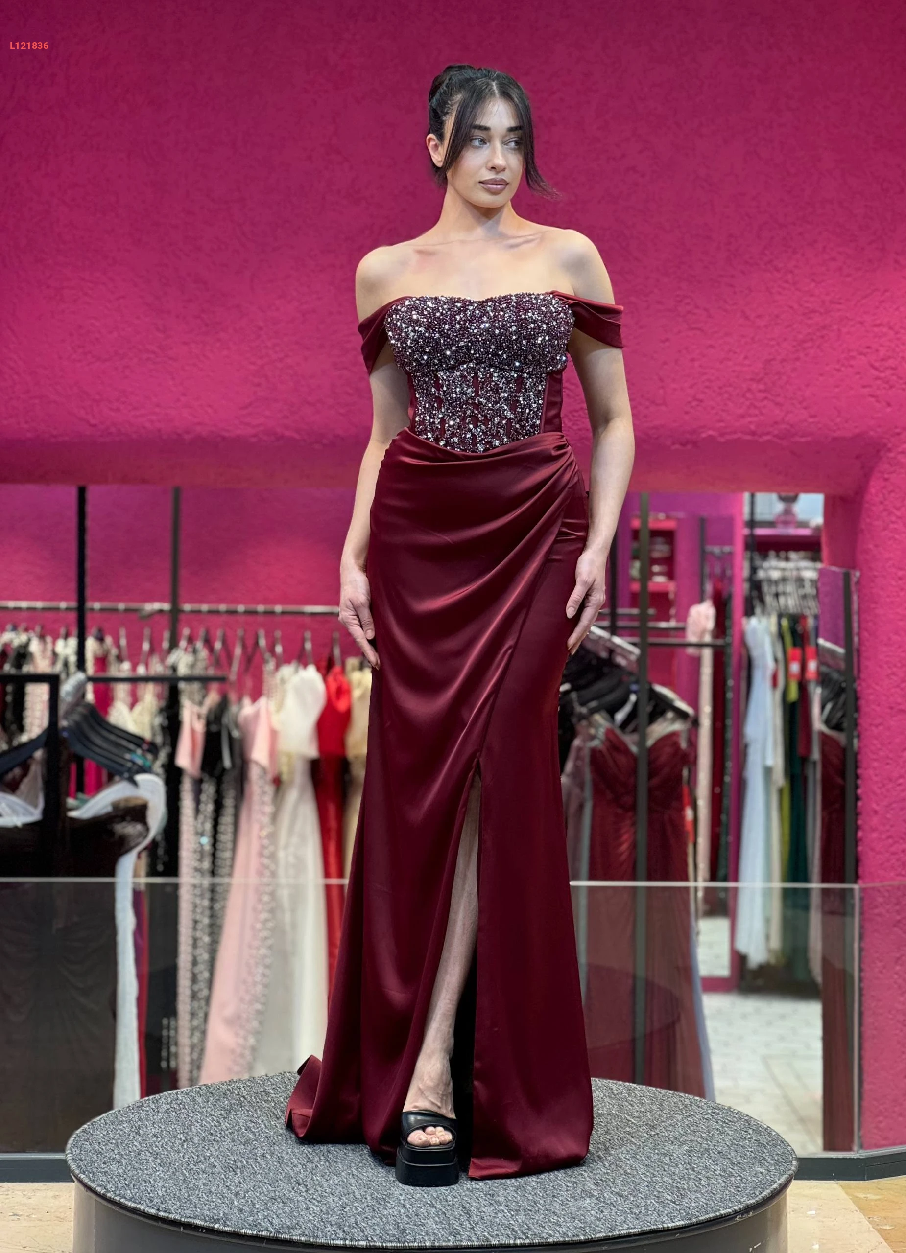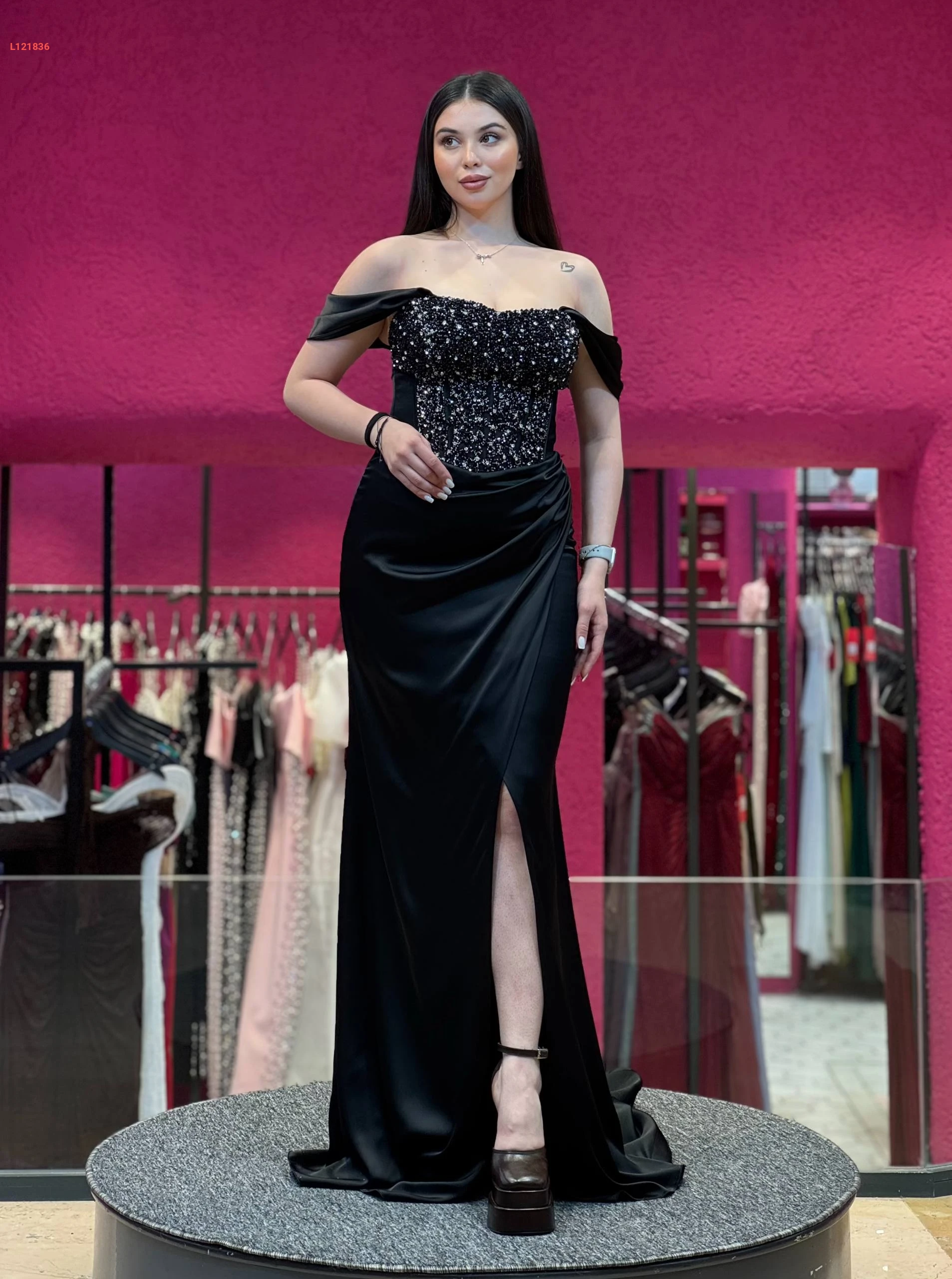 فستان سهرة ساتان شيك