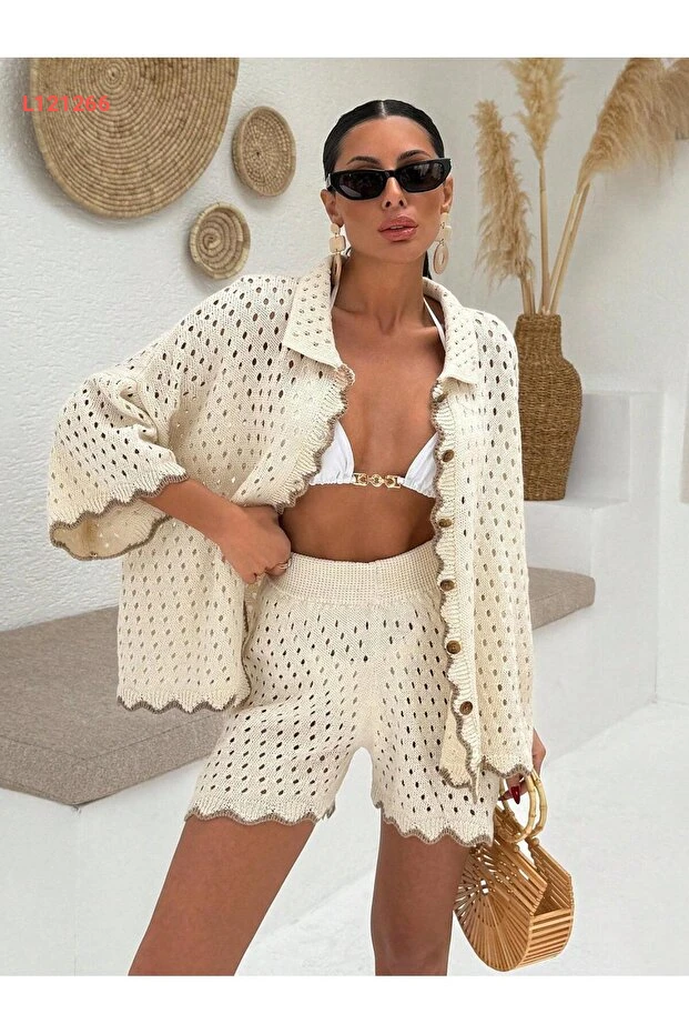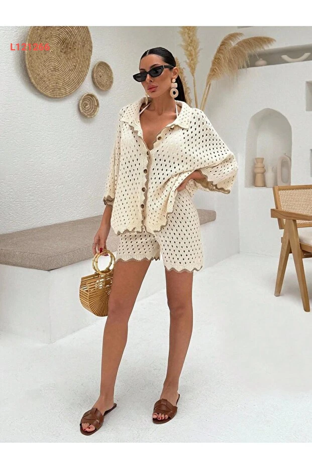 بلوزة وشورت إلفين المزودان بأزرار