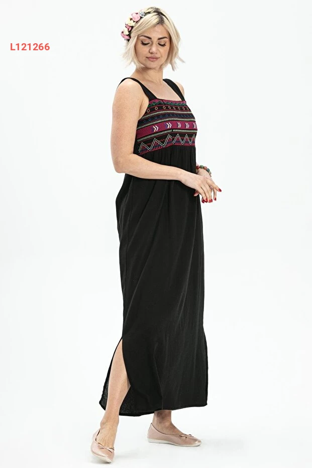استمتع بأناقة الصيف مع فستان "Eliş Şile Bezi" الأنيق! مصنوع من قماش شيله الخفيف، يتميز بتصميمه اللاتيني الطويل الذي يمنحك مظهراً جذاباً وعصرياً. بفضل لونه الأسود الأنيق، يمكنك ارتداؤه في مختلف المناسبات، مما يجعله الخيار المثالي لإطلالة مريحة وأنيقة.