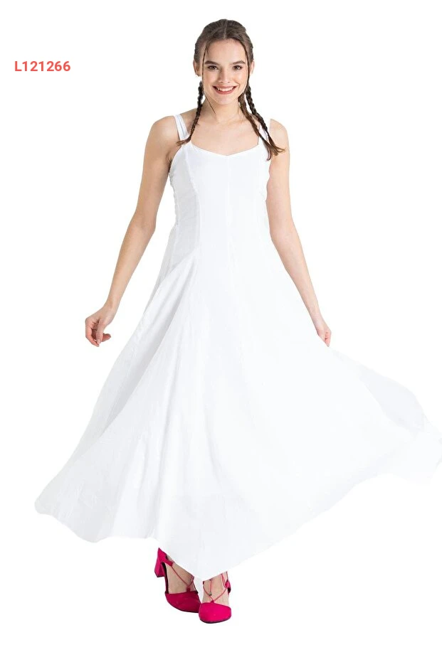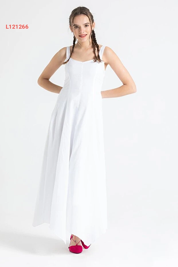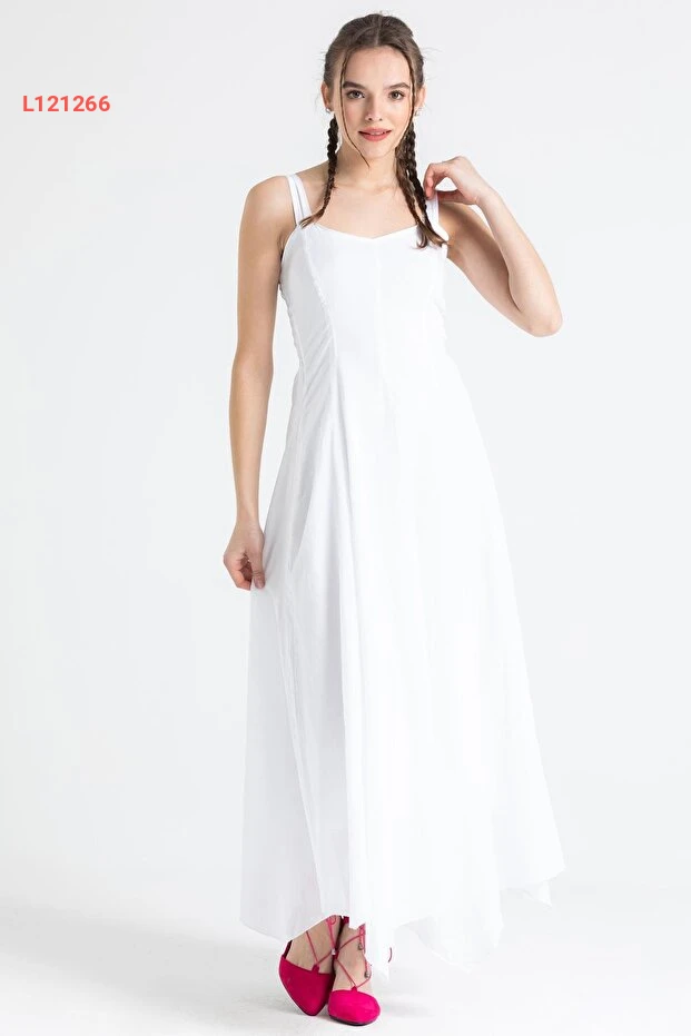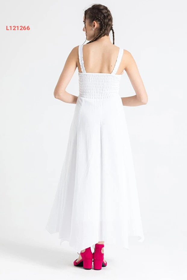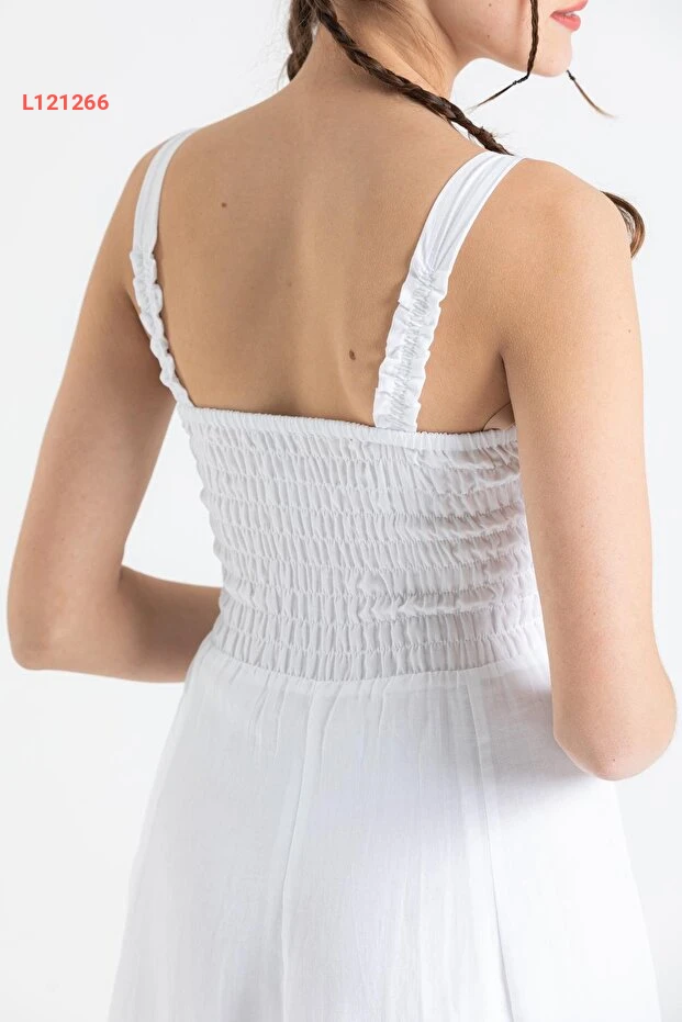 فستان صيفي أبيض من قماش شيلي بتصميم مريح مع حمالات