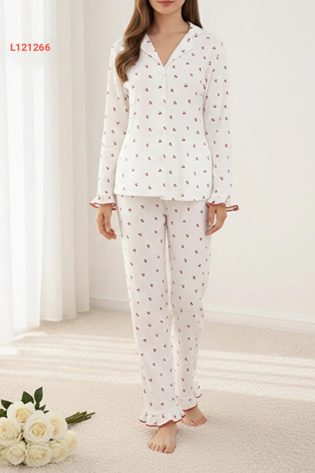 استمتعي بنوم هانئ وأناقة لا مثيل لها مع طقم بيجامة ELİTOL المزينة بنقشة الكرز الجذابة. مصنوعة من أقمشة ناعمة تضم تصميمًا عصريًا مع أزرار جميلة، توفر لك الراحة والمرونة طوال الليل. تألقي بأسلوبك الفريد واستمتعِ برفاهية لا تضاهى في سهراتك المنزلية!