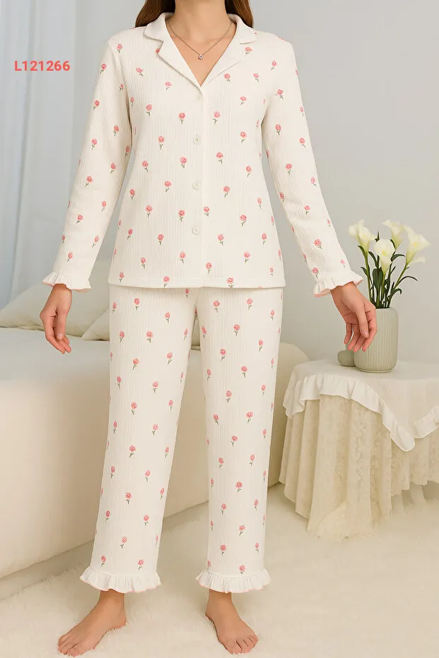 استمتع بجمال الراحة مع طقم البيجاما النسائي ELİTOL المزود بأكمام طويلة وتصميم مزخرف بالورود الأنيقة. مصنوع من قماش ناعم يوفر لك الراحة المثالية أثناء النوم، مع أزرار عملية تضيف لمسة من الأناقة. اجعلي لياليك أكثر سحراً وجاذبية مع هذا الطقم الفريد!