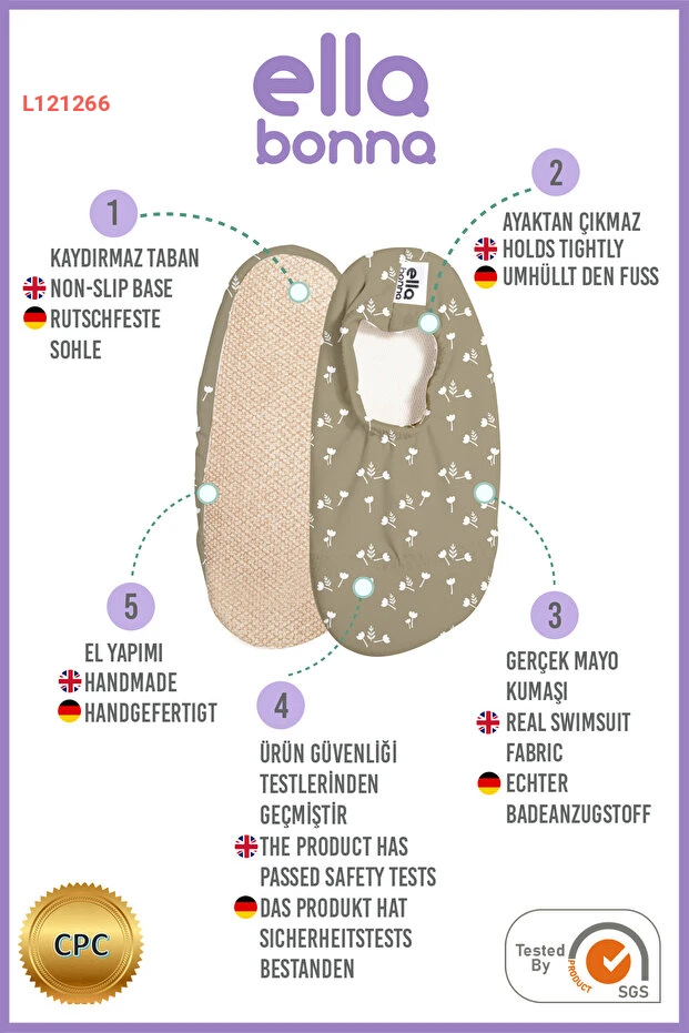 استمتع بأوقات المرح على الشاطئ أو في المسبح مع حذاء Ella Bonna ذو القاعدة غير القابلة للانزلاق، المثالي للأطفال من جميع الأعمار. تصميمه الأنيق والألوان الزاهية تجعله الخيار المثالي لكل طفل، بينما توفر مادة الحذاء خفة الوزن والراحة في كل خطوة. احمِ قدمي صغيرك وامنحه حرية الحركة أثناء اللعب في المياه!