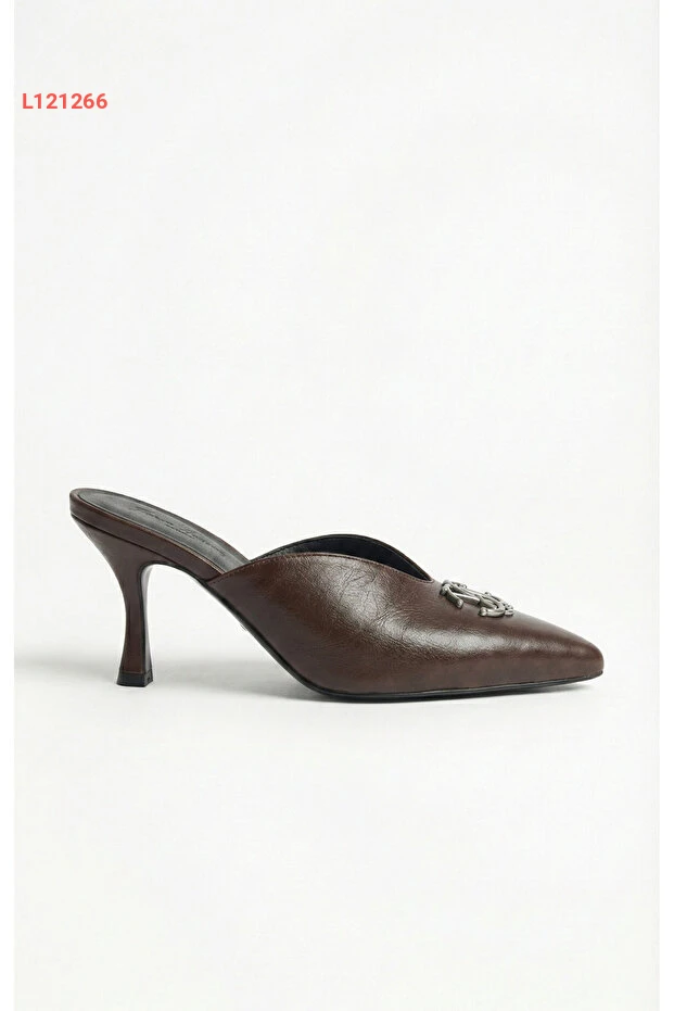elvinshoes Lily kadın kahverengi topuklu mule terlik