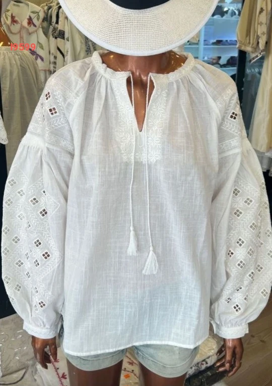 بلوزة بأكمام بالونية مطرزة