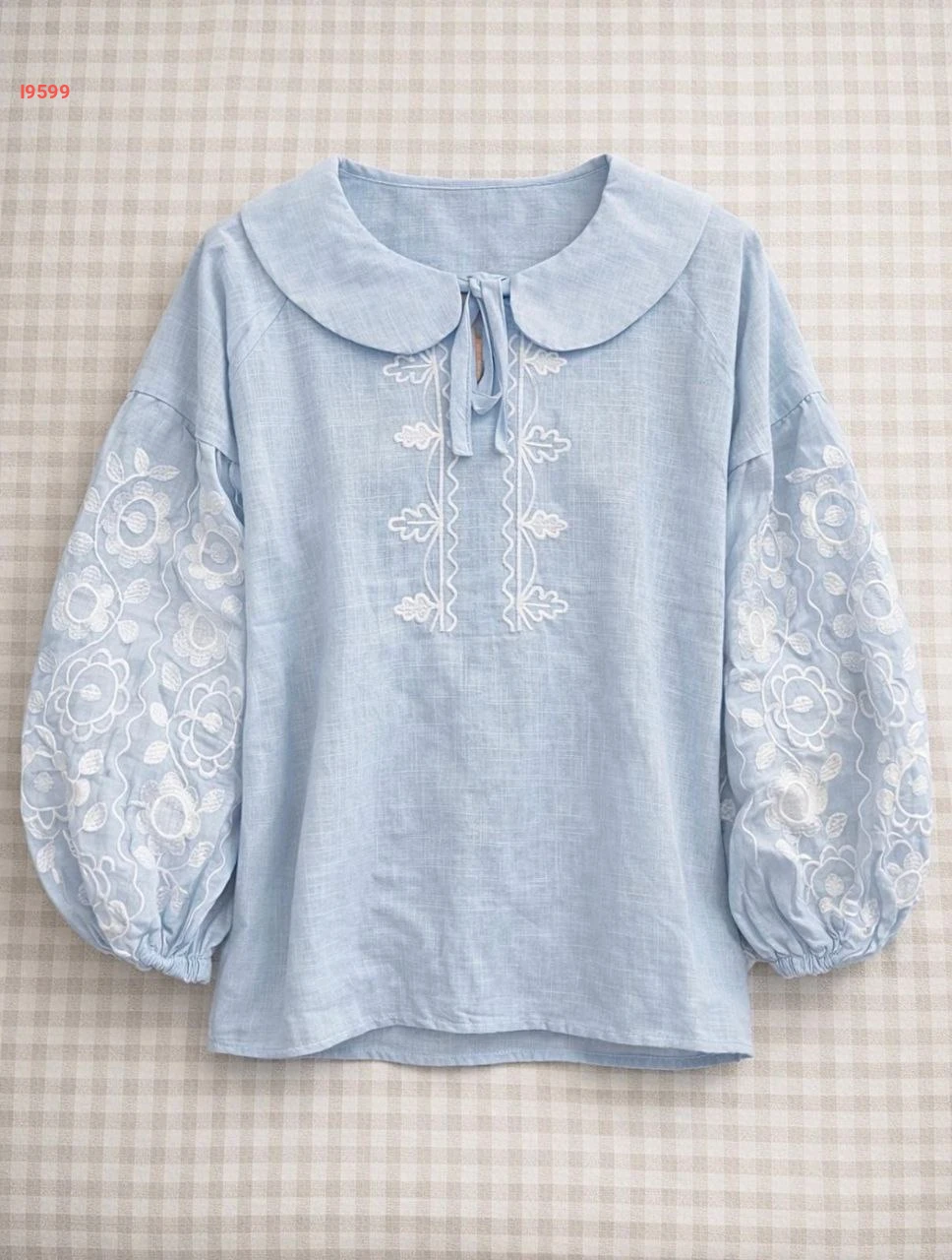 بلوزة بأكمام بالونية مطرزة وربطة
