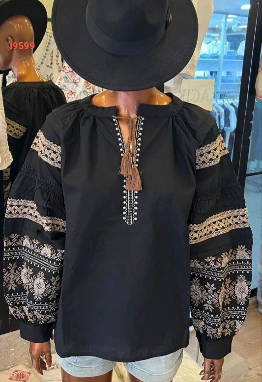 بلوزة مطرزة بأكمام بالونية