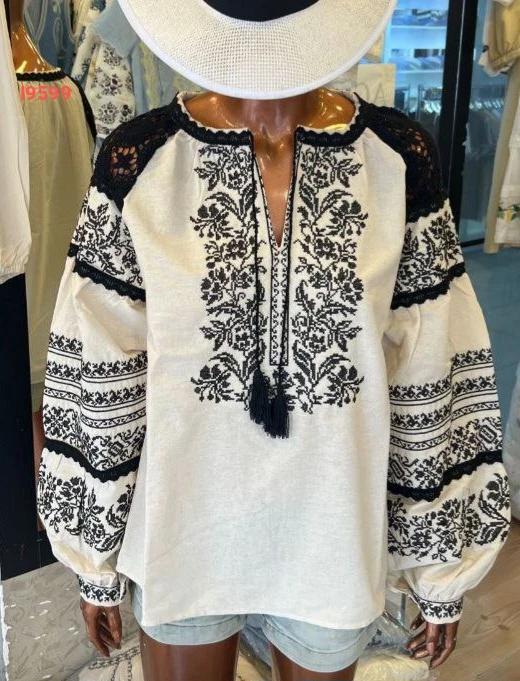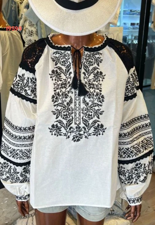 بلوزة مطرزة بأكمام بالونية