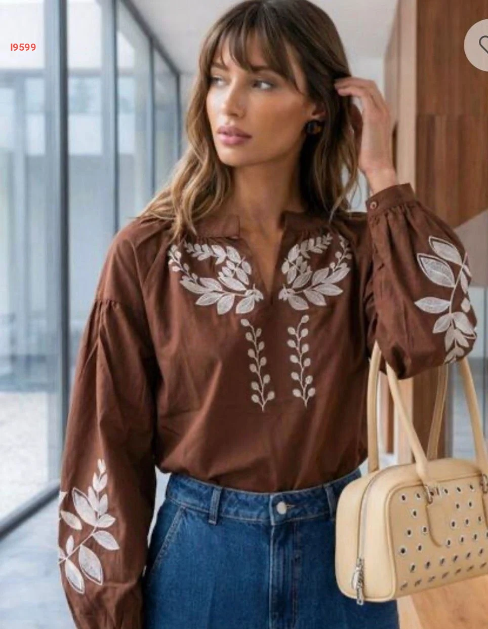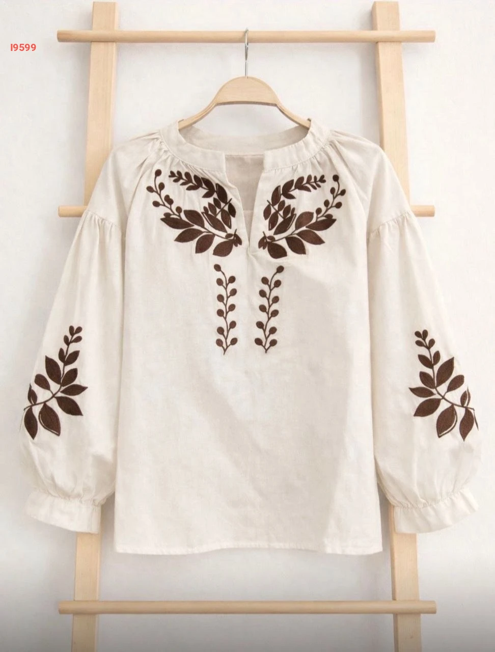 بلوزة مطرزة بأكمام بالونية
