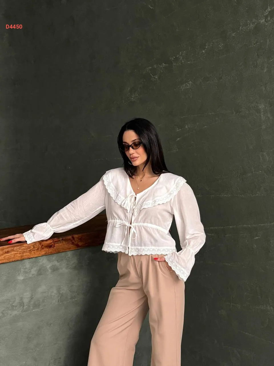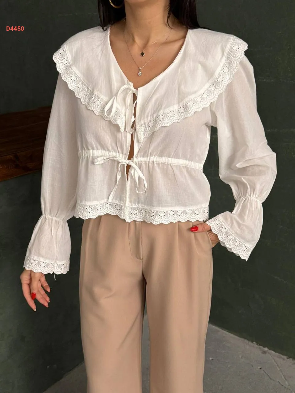 بلوزة مطرزة مزمزمة، مع ربطات