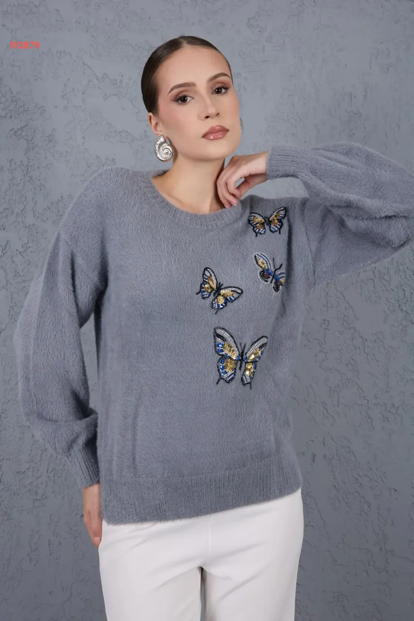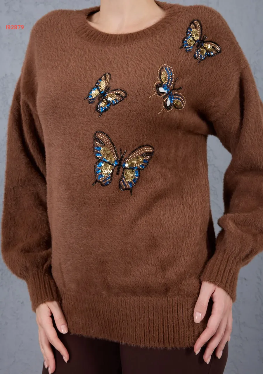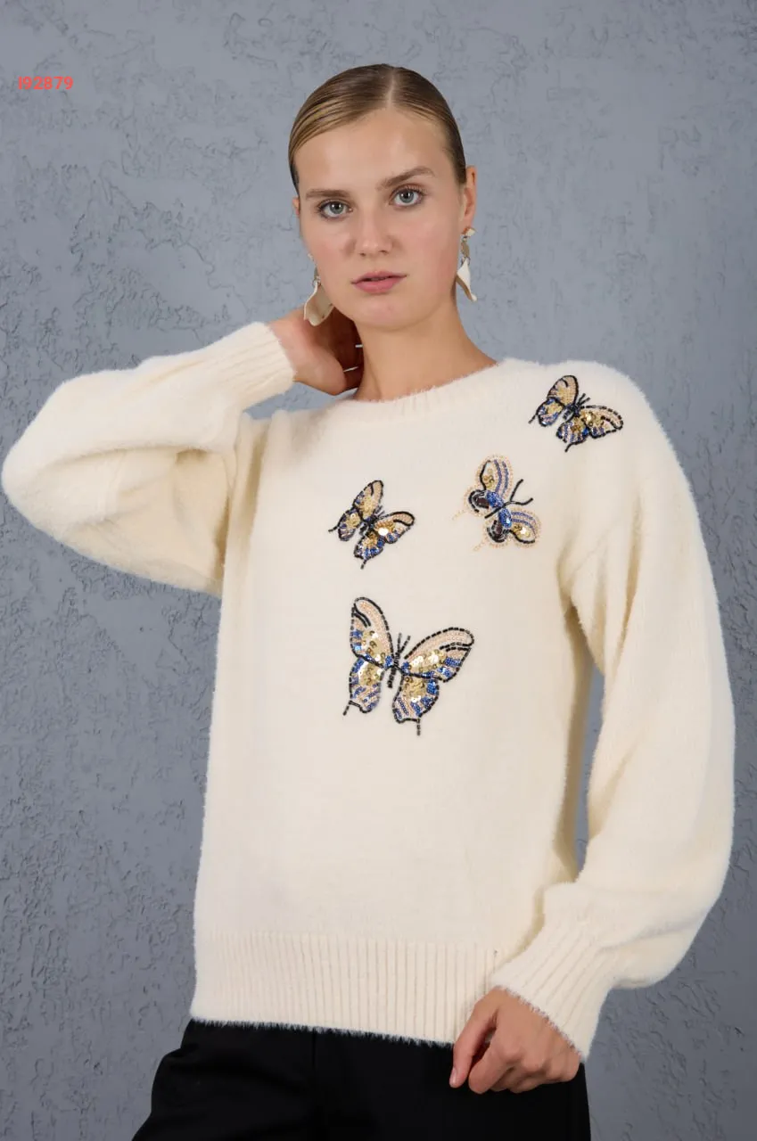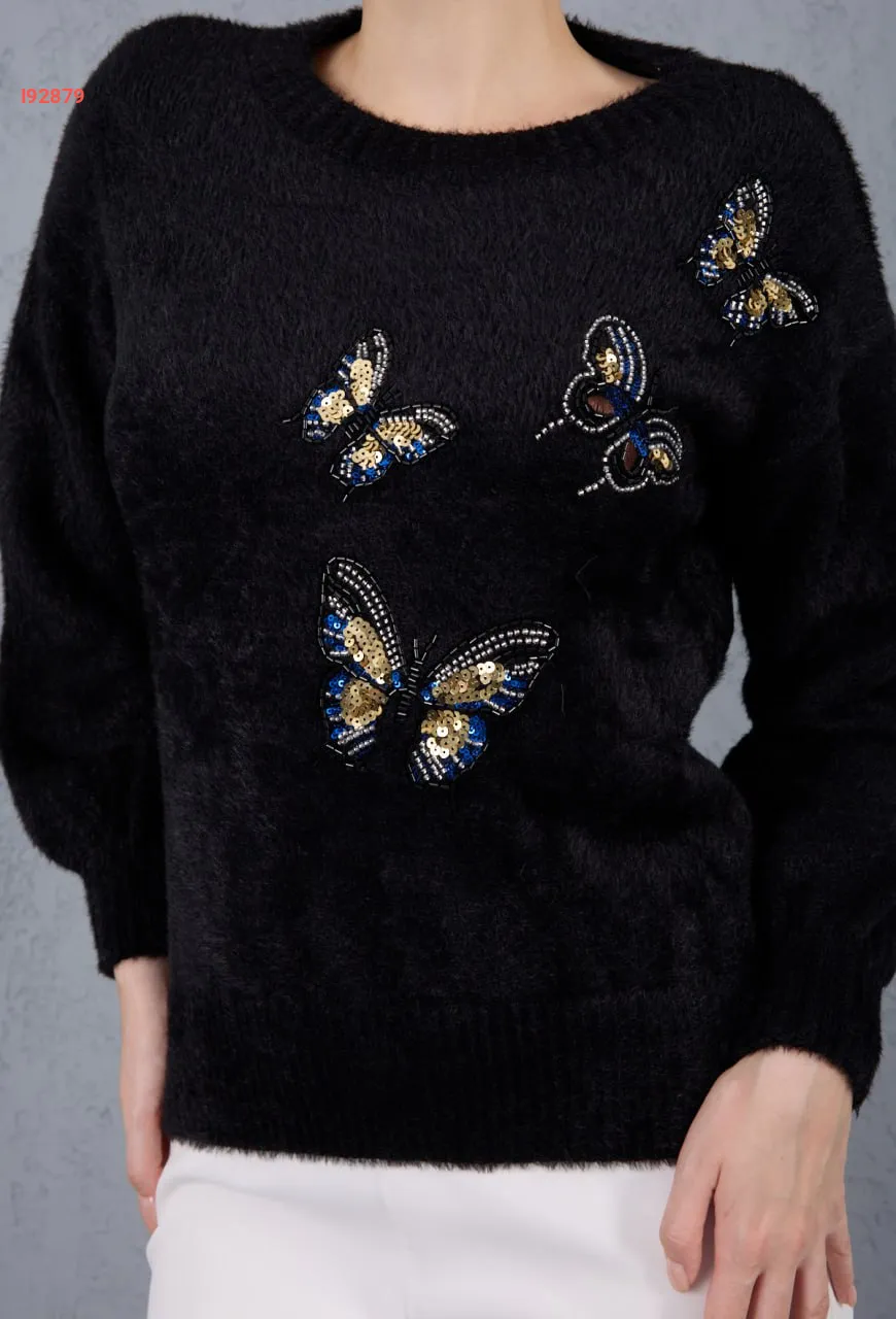كنزة تريكو مطرزة فراشات بريق