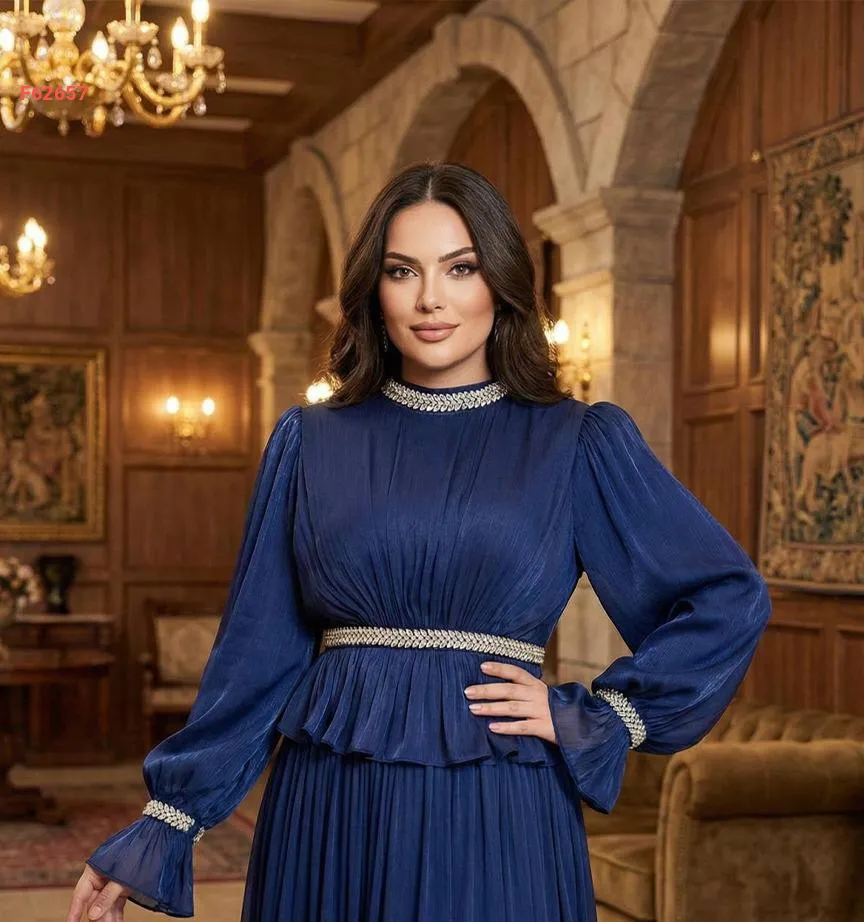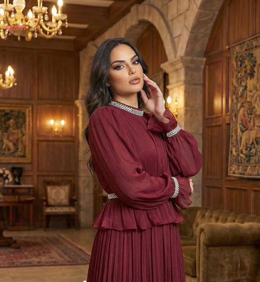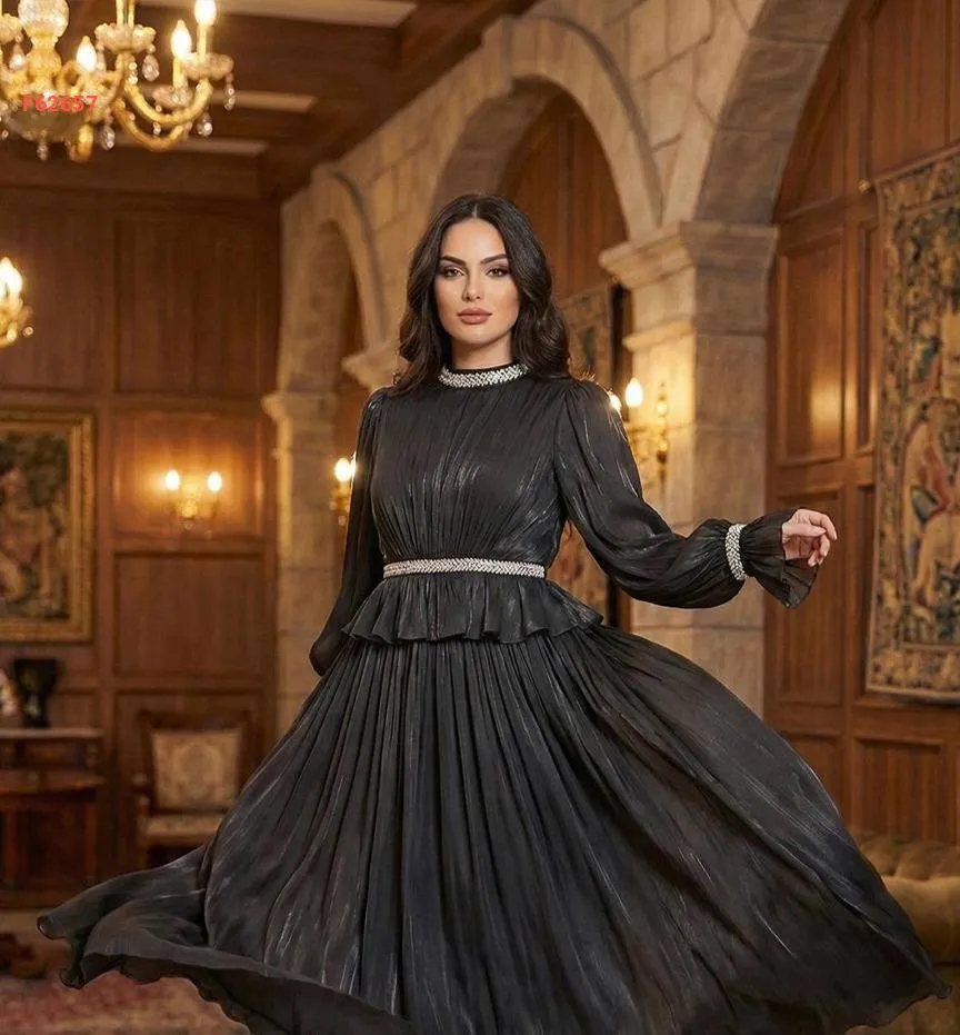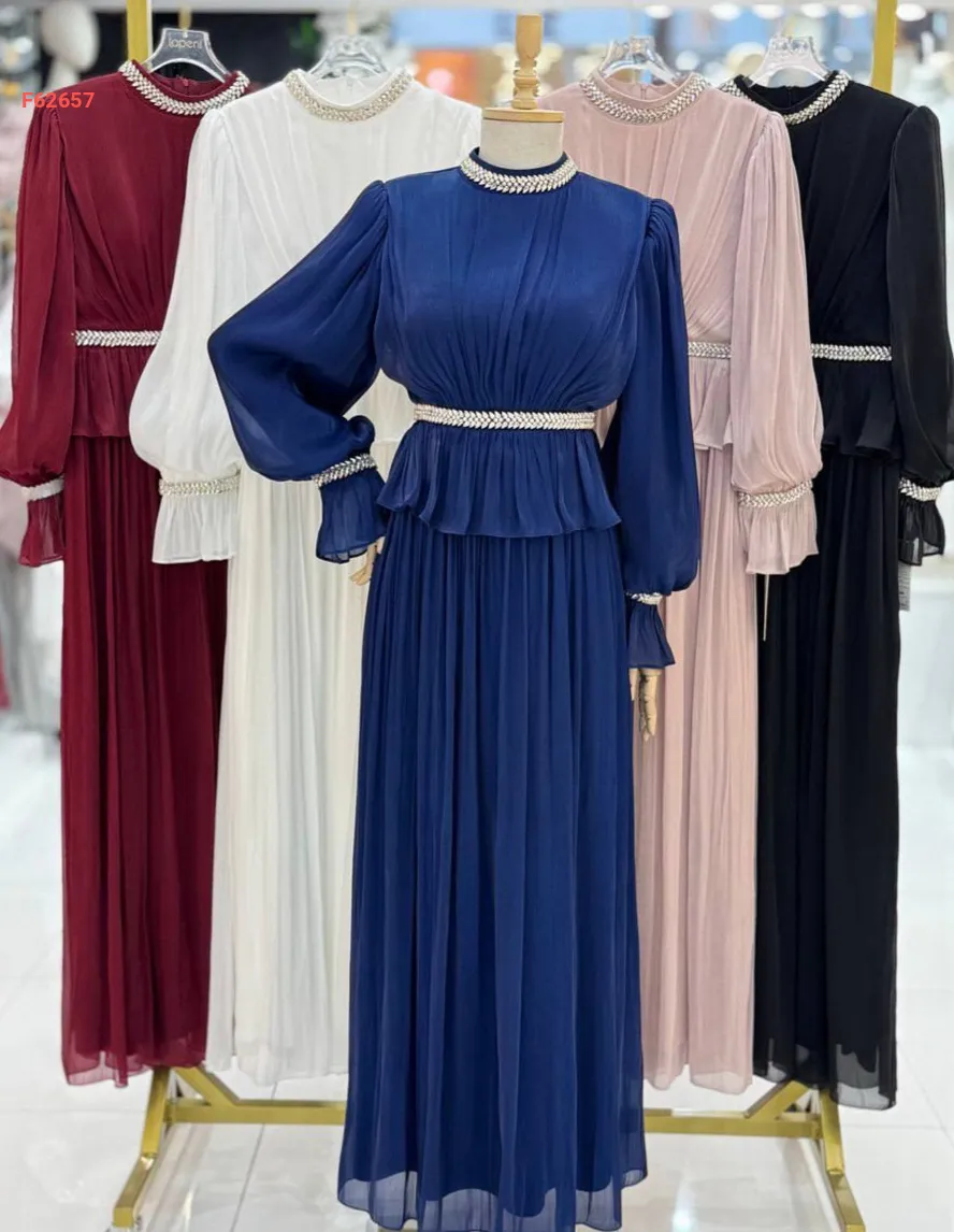 فستان طويل شيفون مطرز أحجار