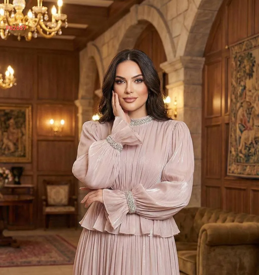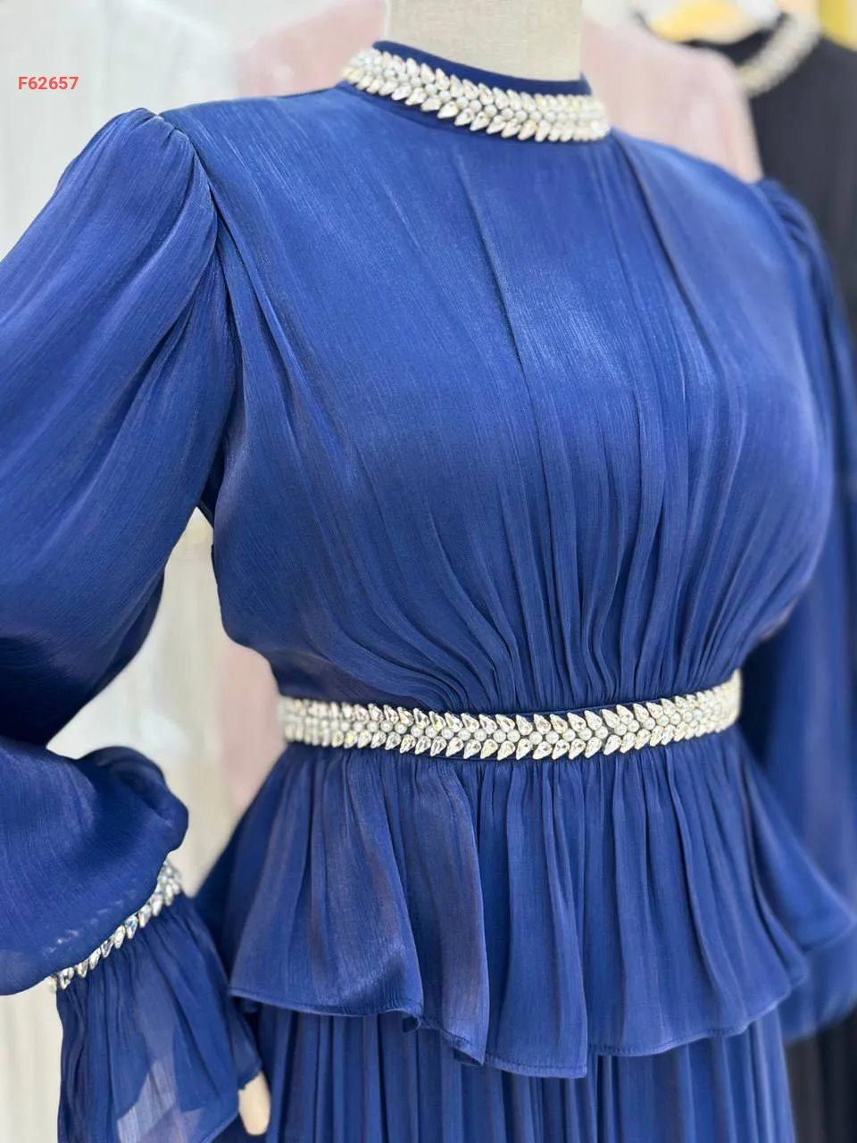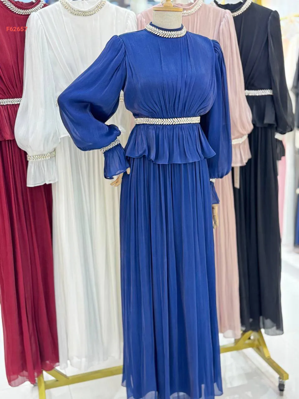 فستان طويل شيفون مطرز أحجار