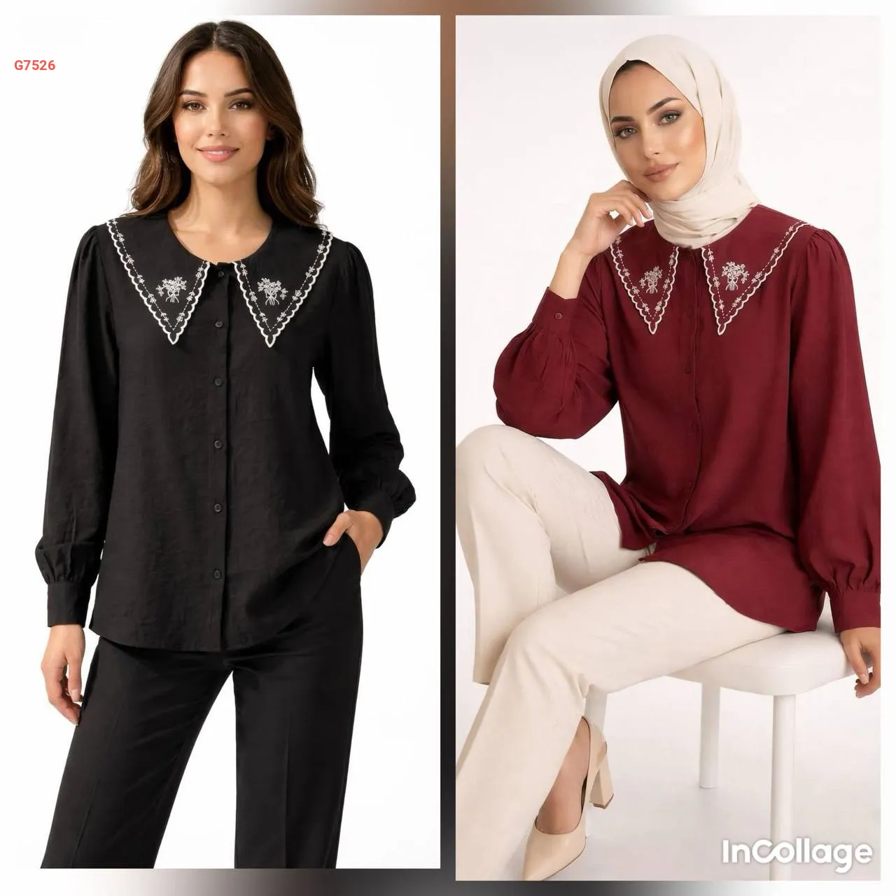 قميص مودال بياقة مطرزة