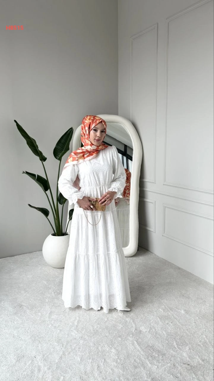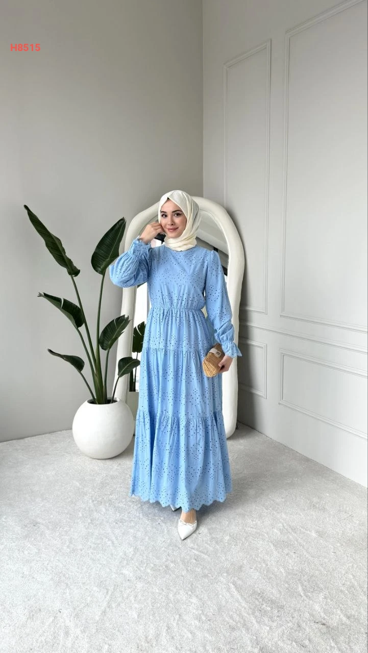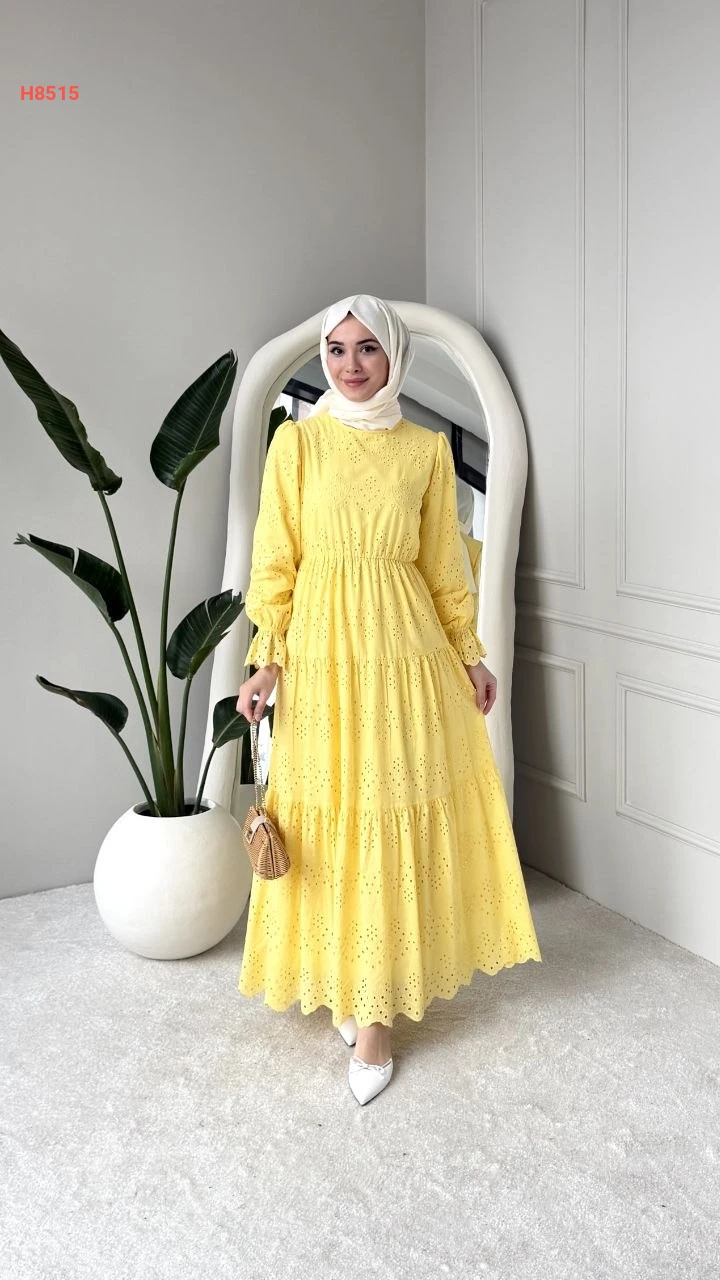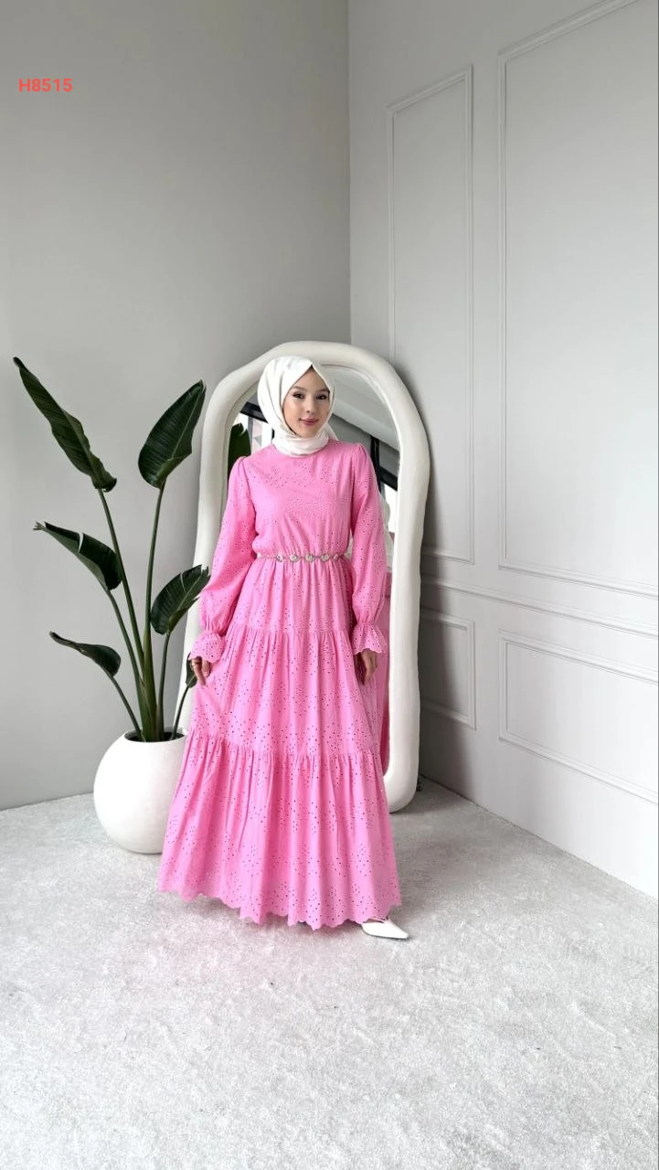 فستان قطن مطرز، يتميز بتصميم الأدوار المتدرجة وخصر محدد