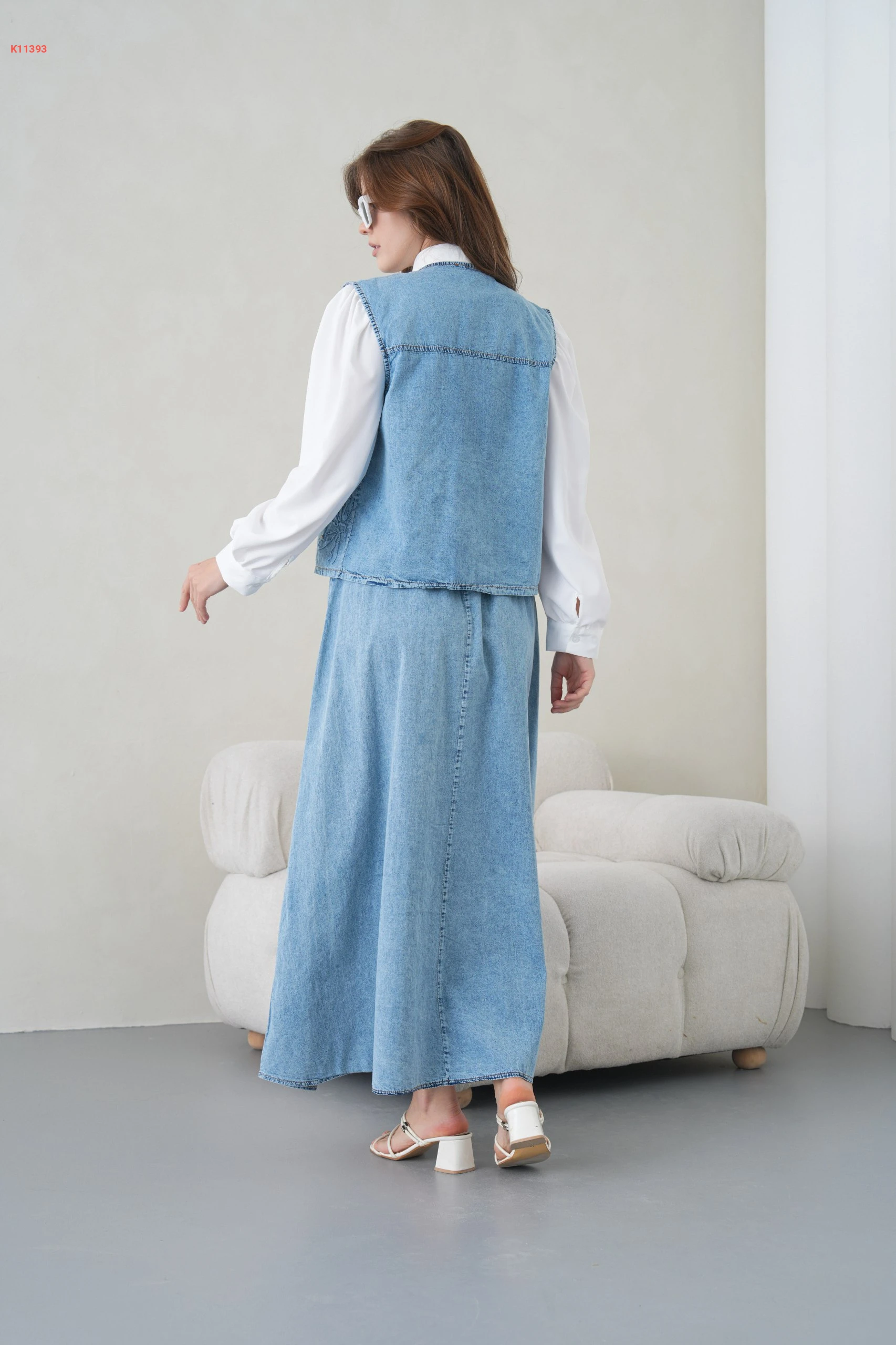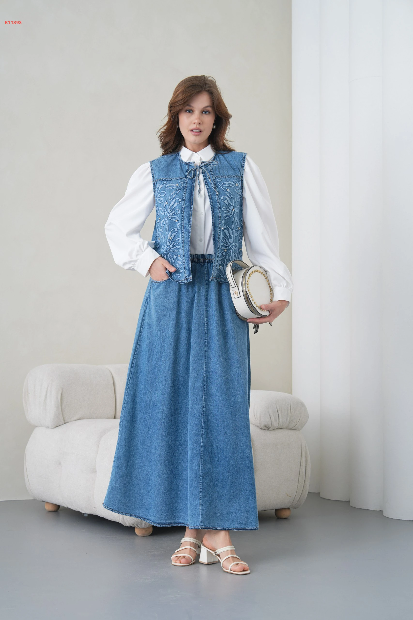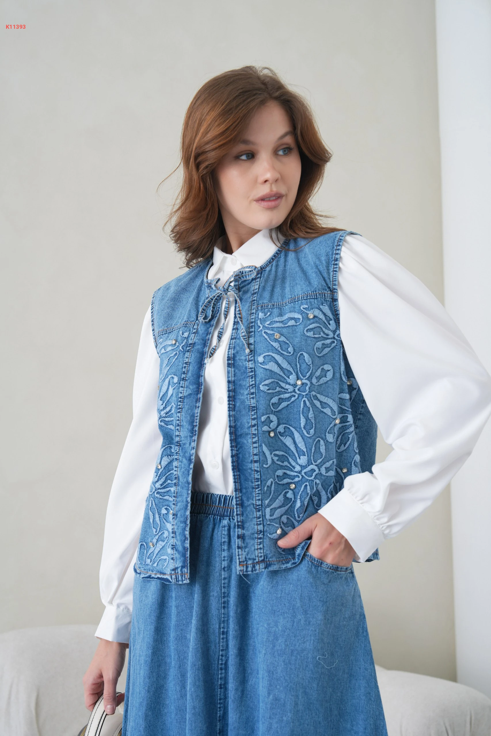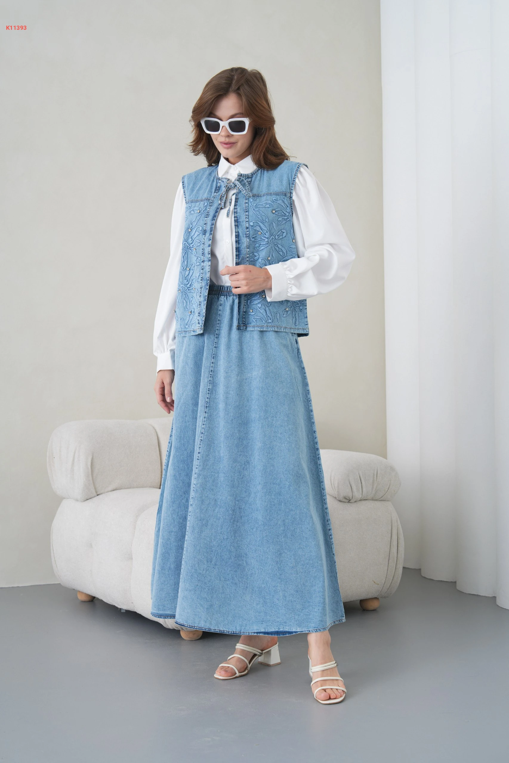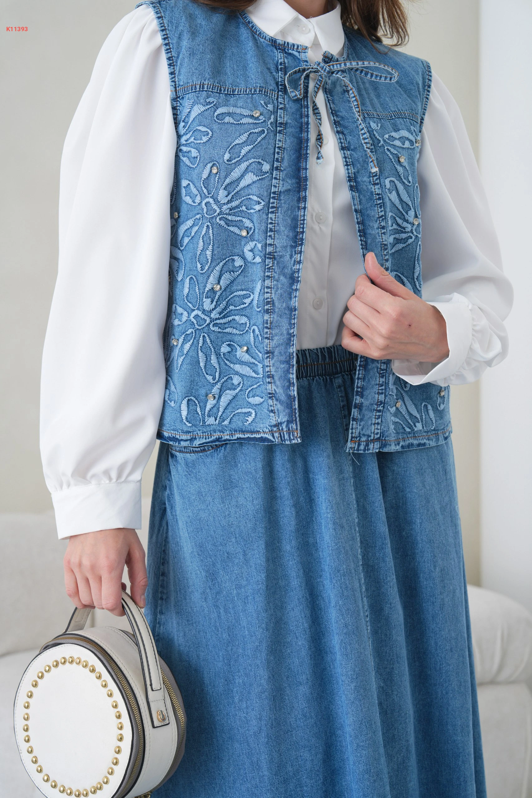 طقم تنورة جينز ويلك مطرز