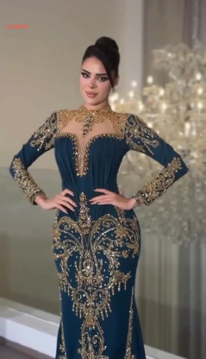 فستان سهرة مطرز مع أحجار