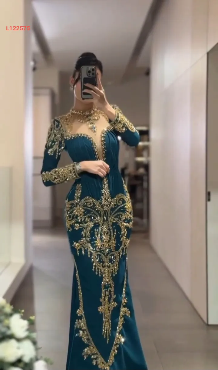 فستان مخمل طويل مطرز