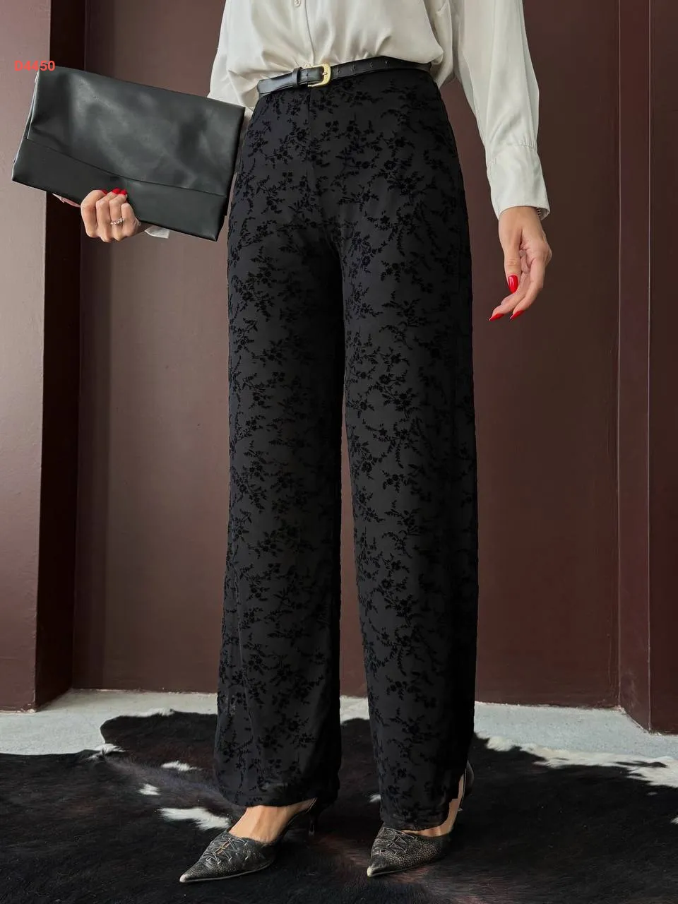 بنطال مطرز خصر عالي
