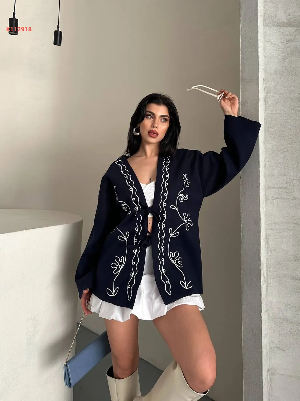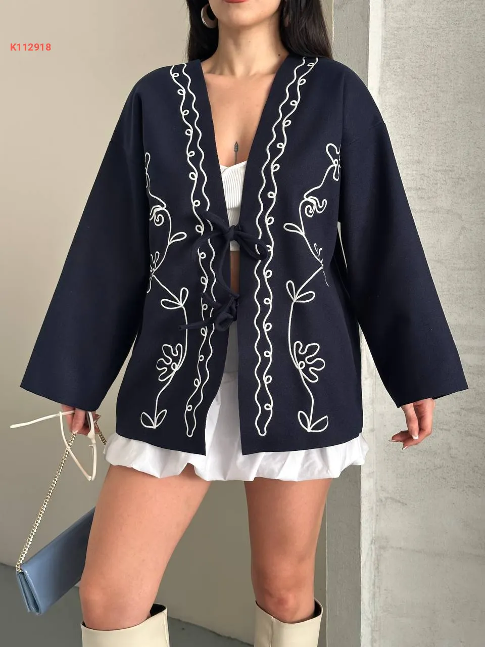 جاكيت مطرز بربطات أمامية