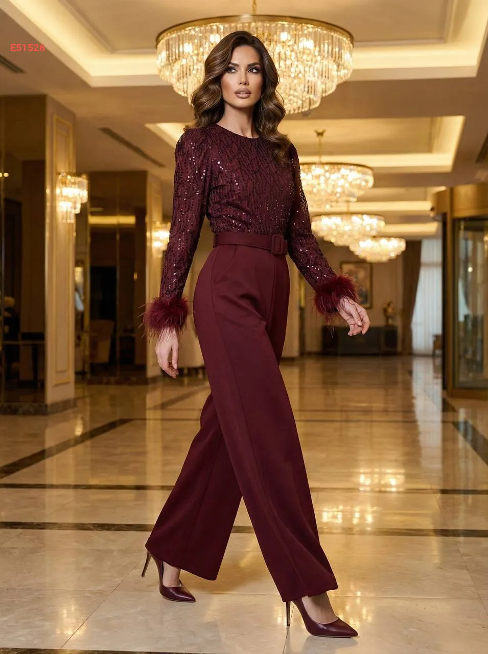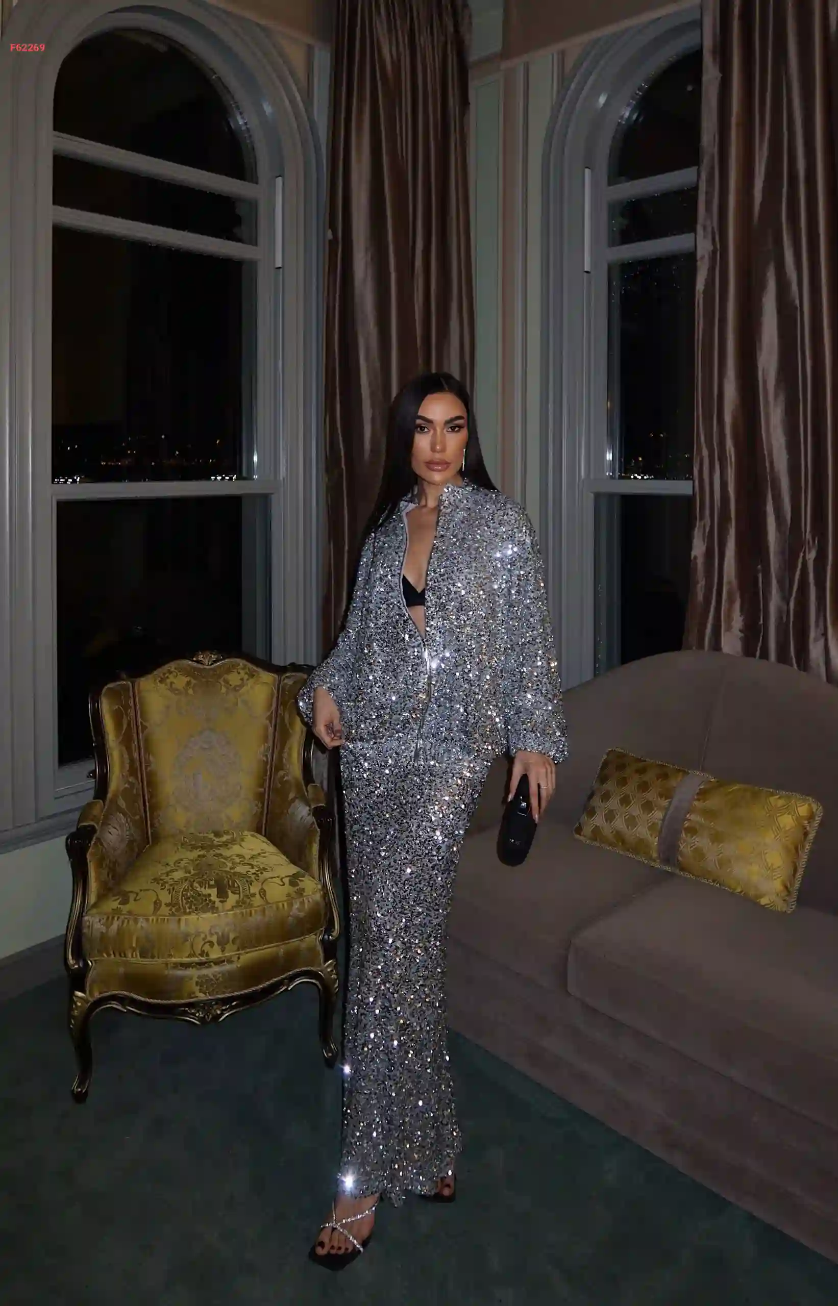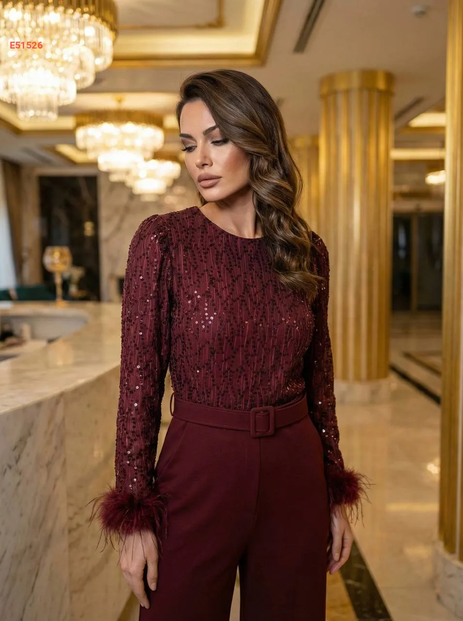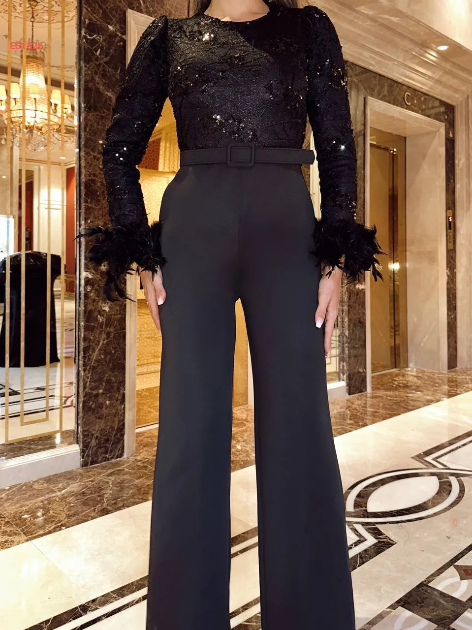 جمبسوت مطرز بالترتر مع ريش عالكم