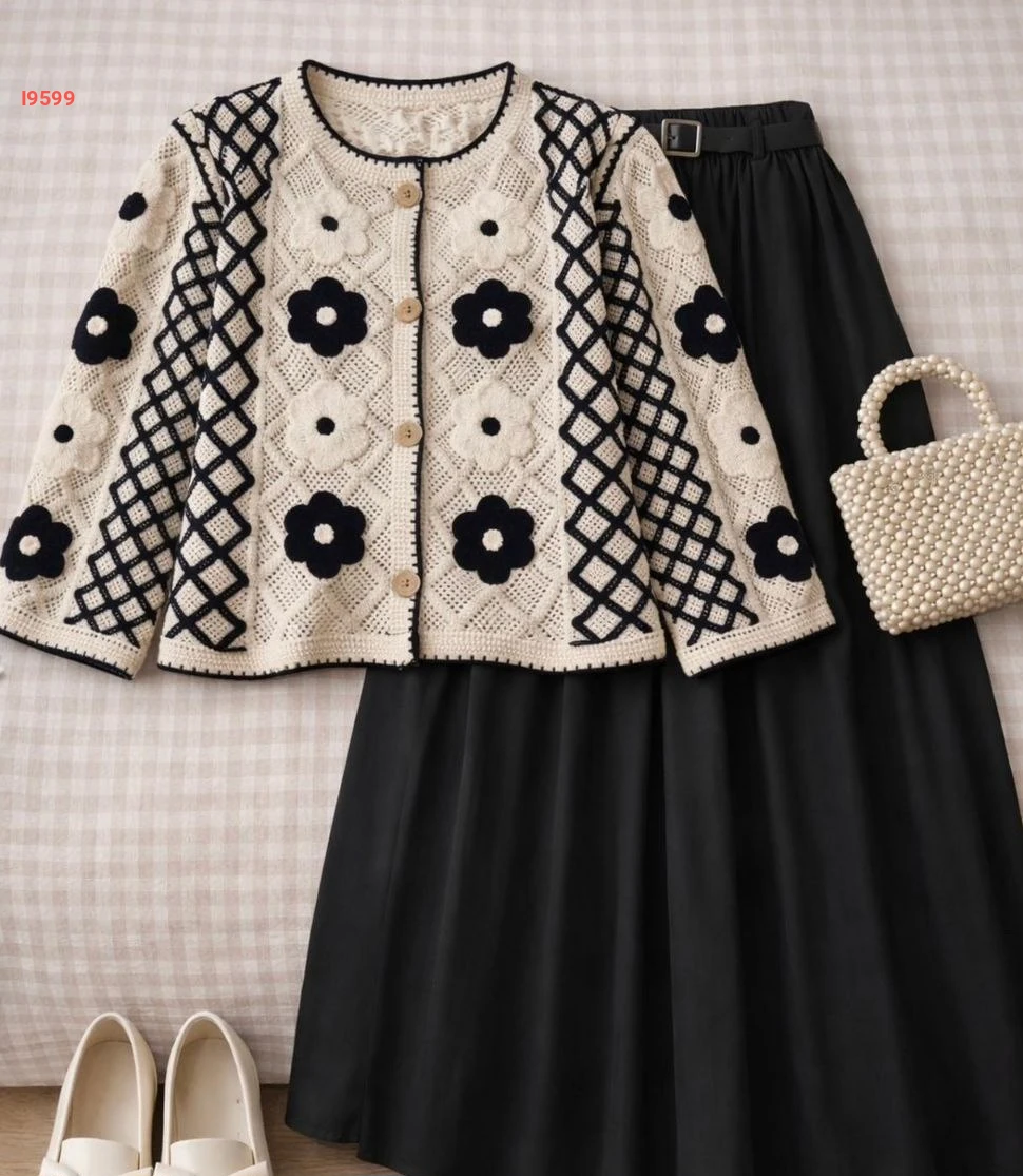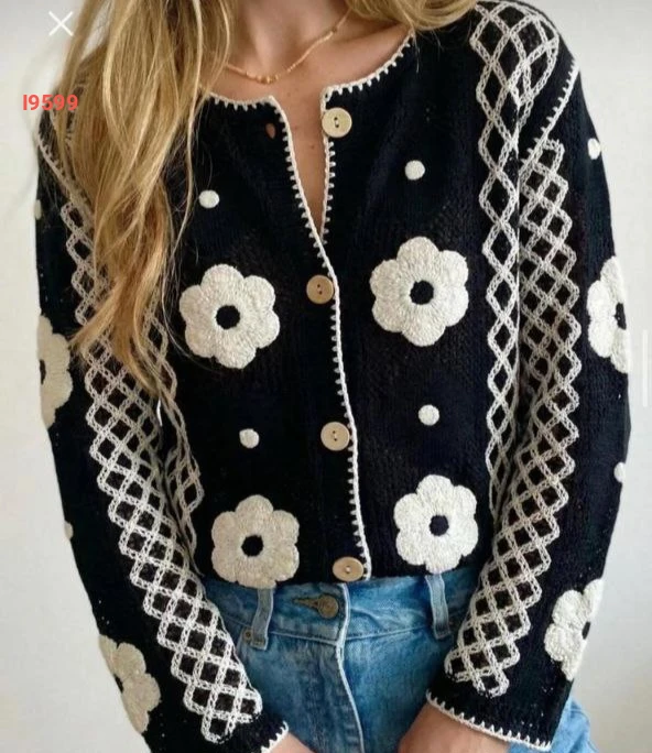 جاكيت تريكو مطرز مع ورد