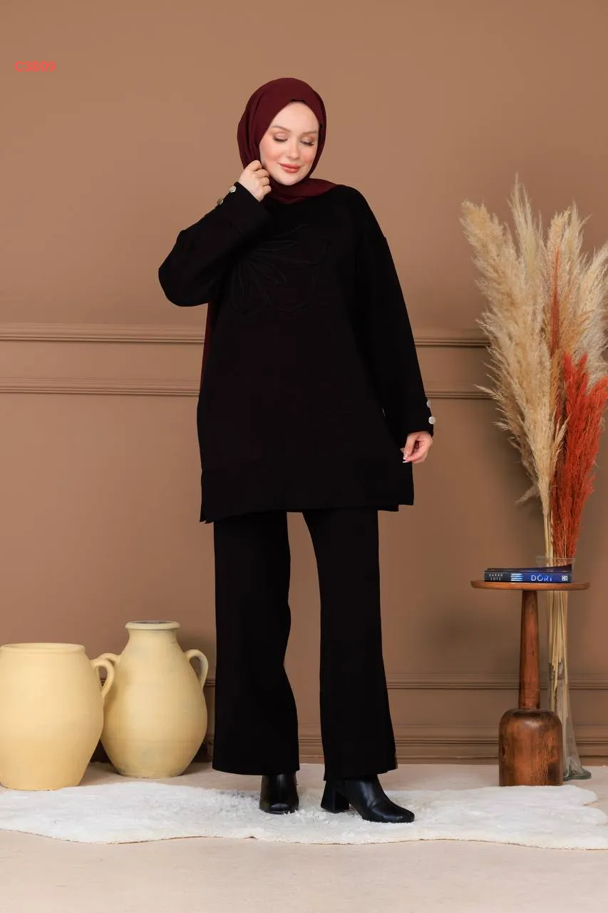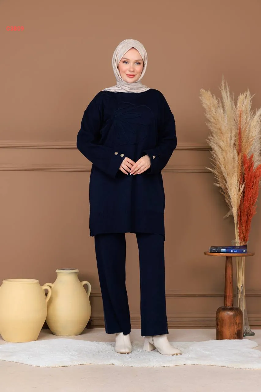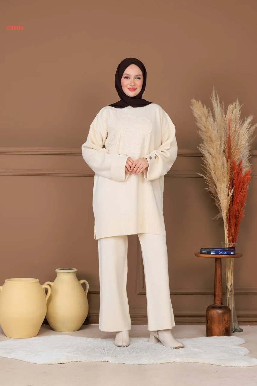 طقم بنطال تريكو وتونيك مطرز