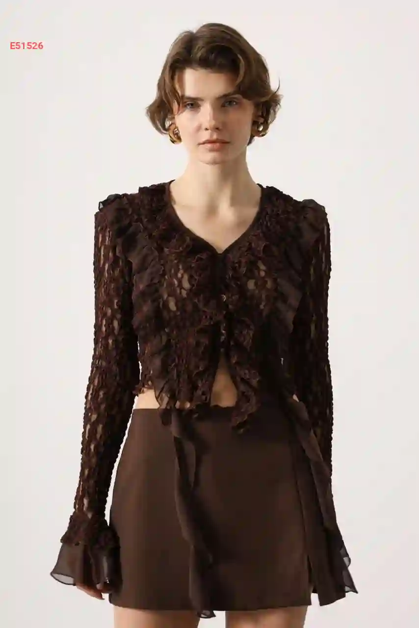 بلوزة دانتيل بتفاصيل كشكش
