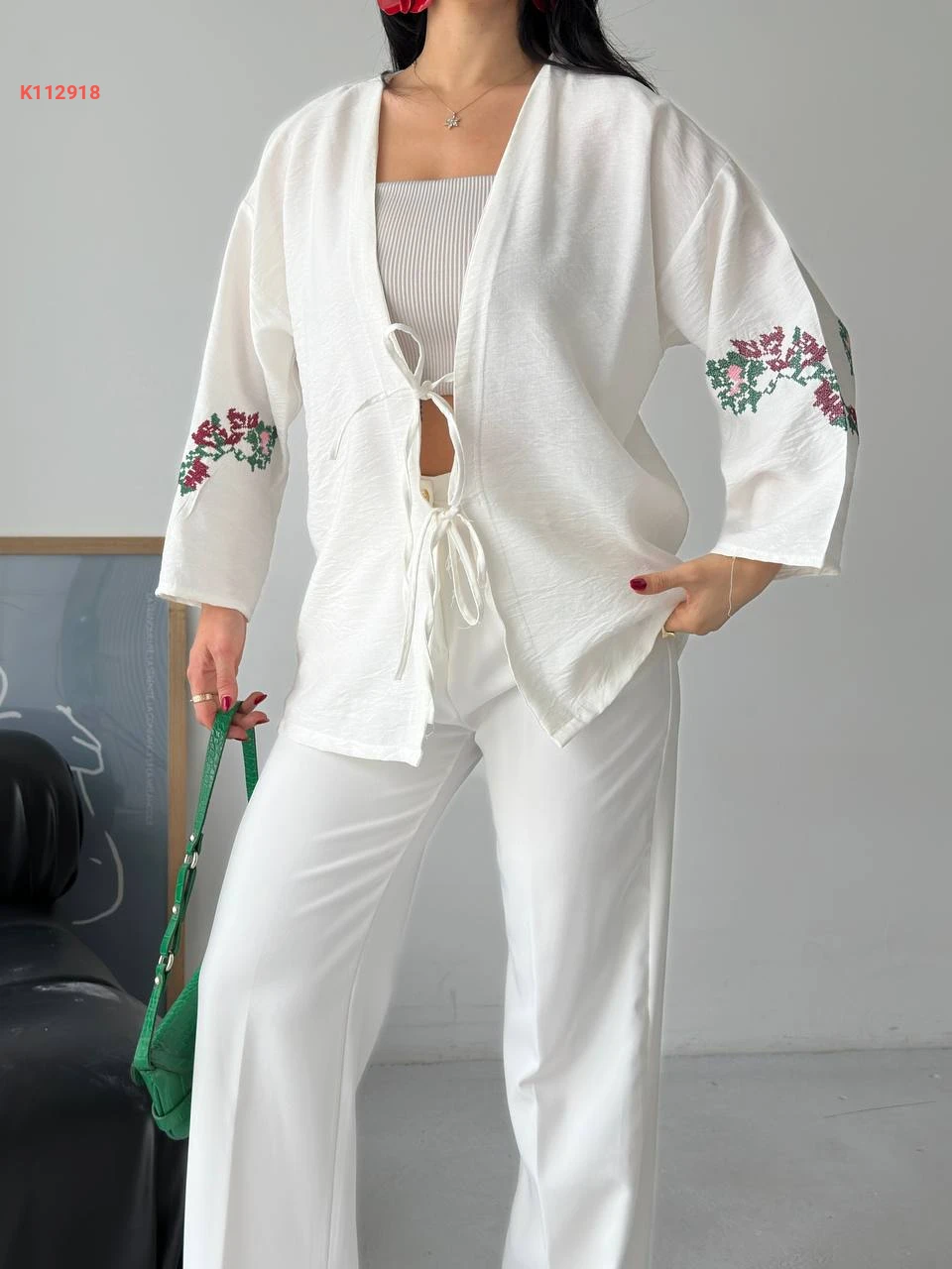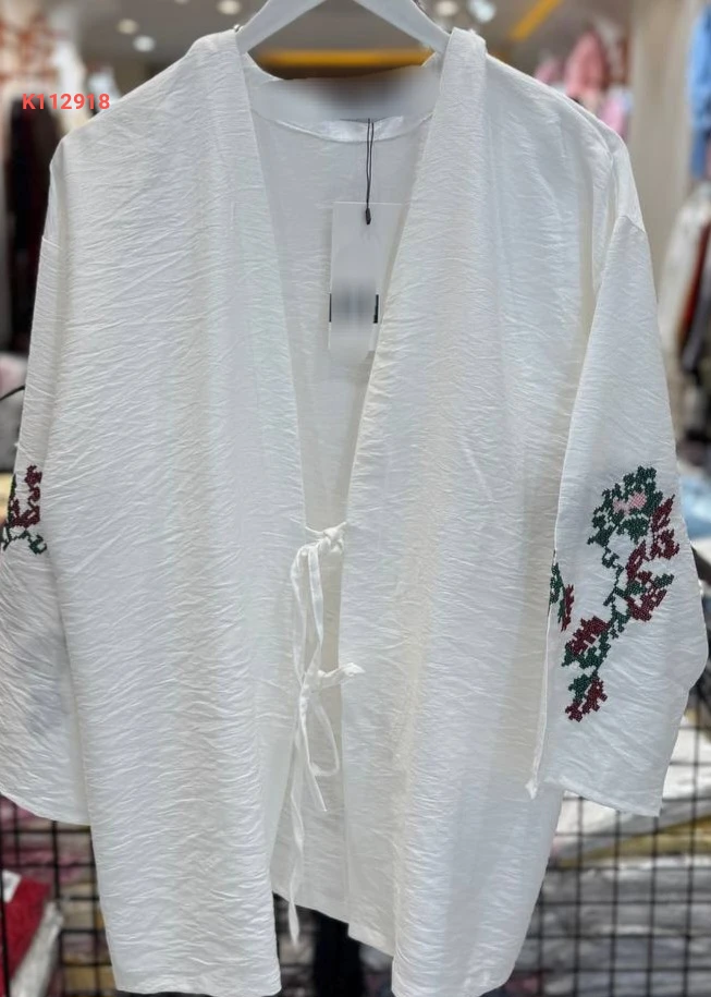 كيمون كتان مطرز بربطات