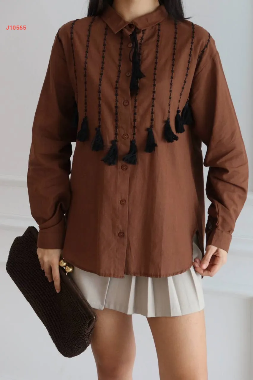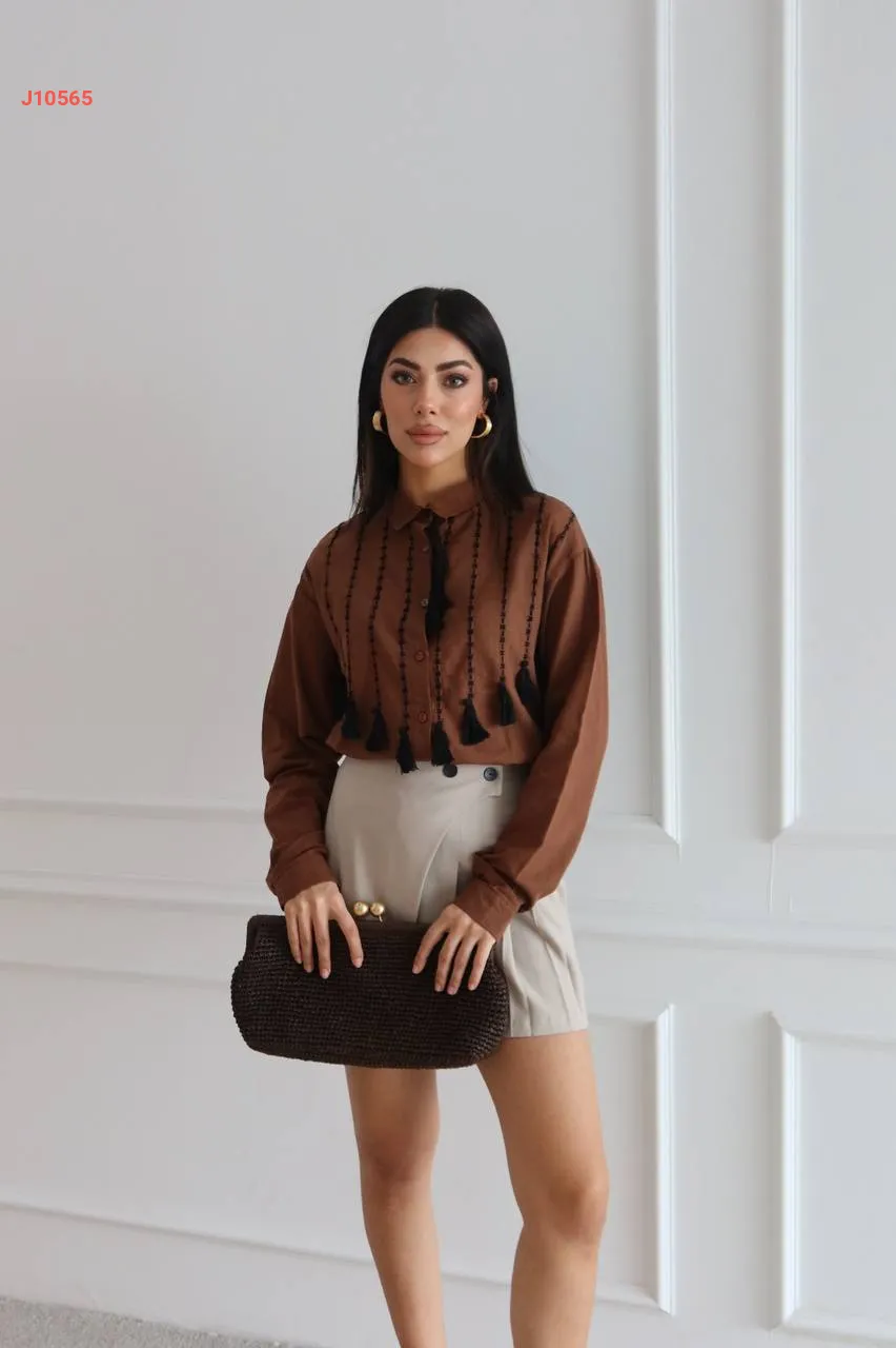 قميص كتان مطرز بشراسيب