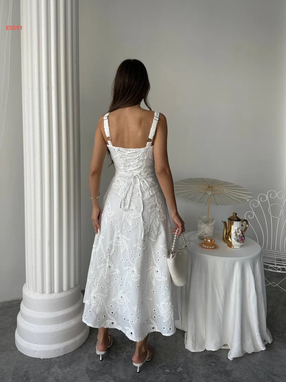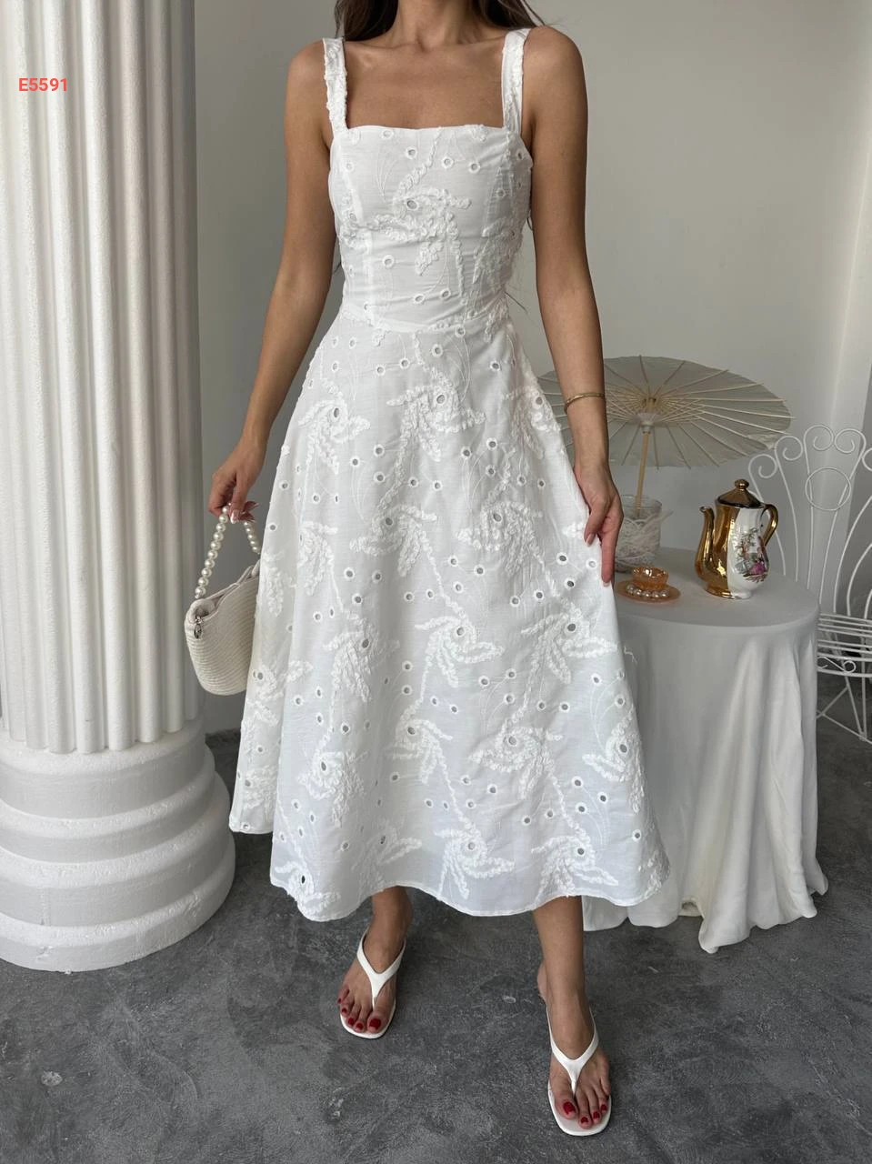 فستان طويل حفر مطرز