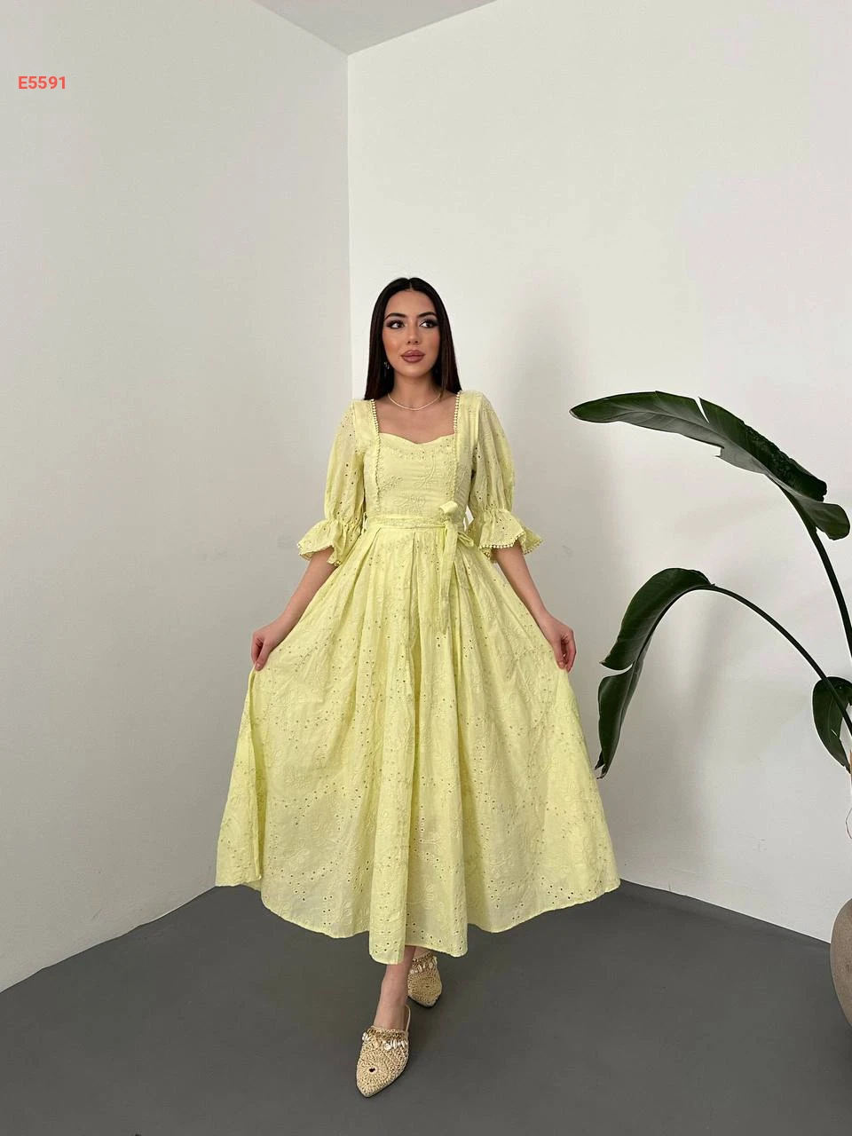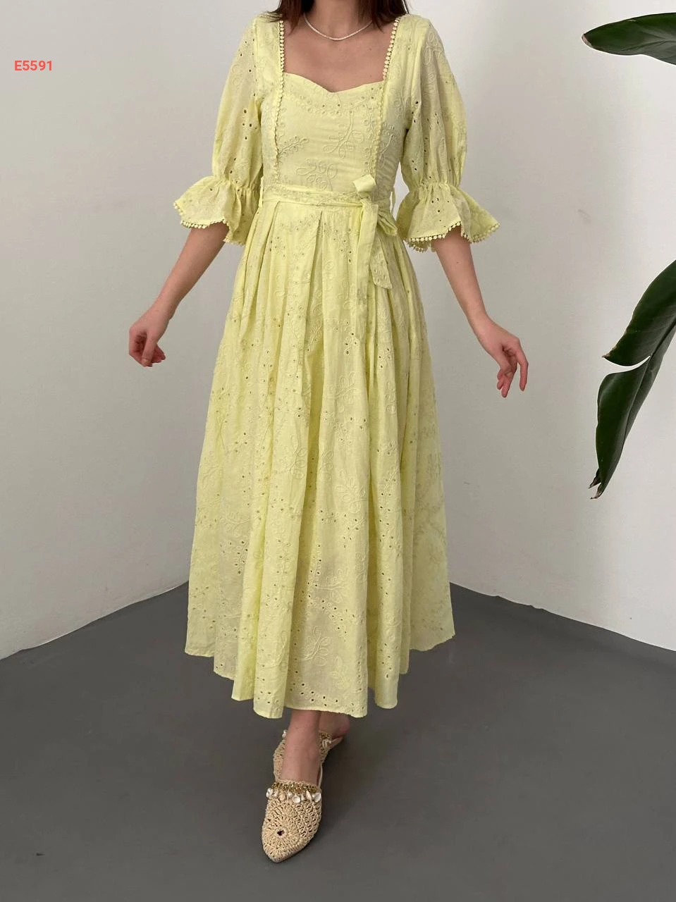 فستان طويل مطرز مع زنار