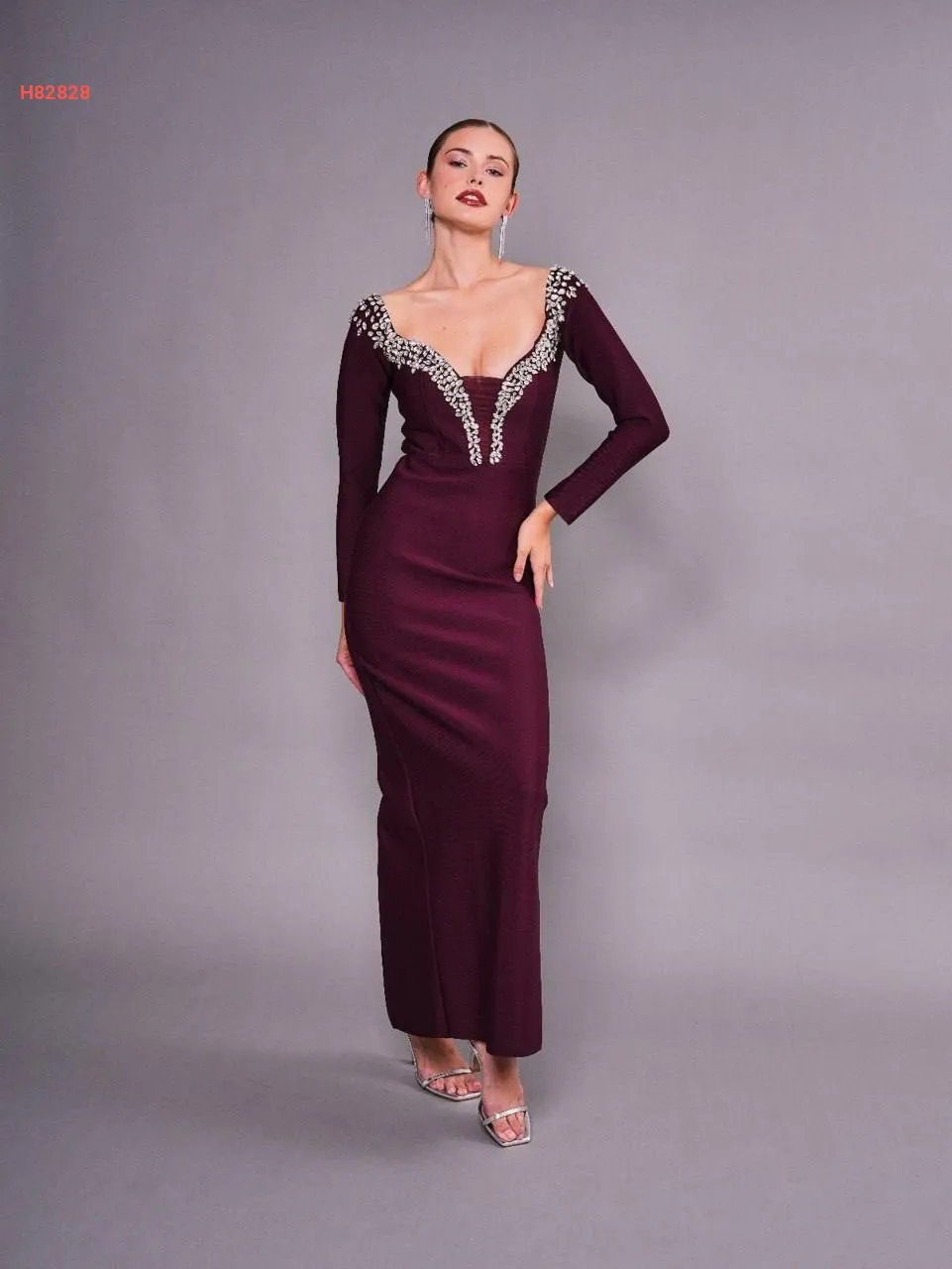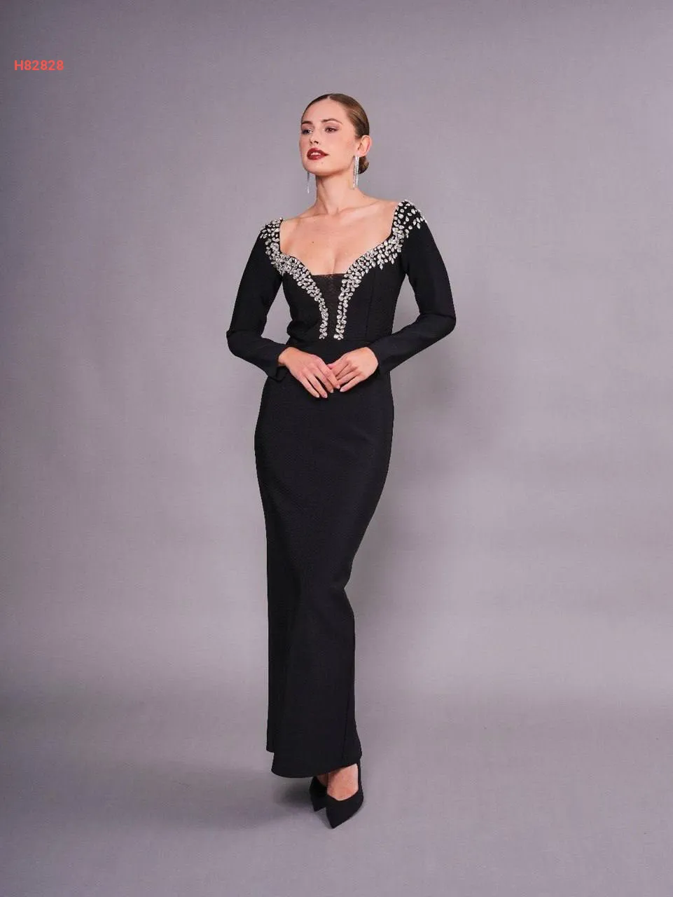 فستان طويل مطرز بأحجار