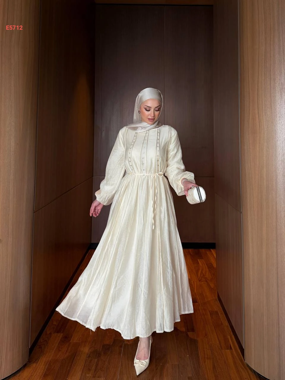 فستان طويل كلوش مطرز أحجار