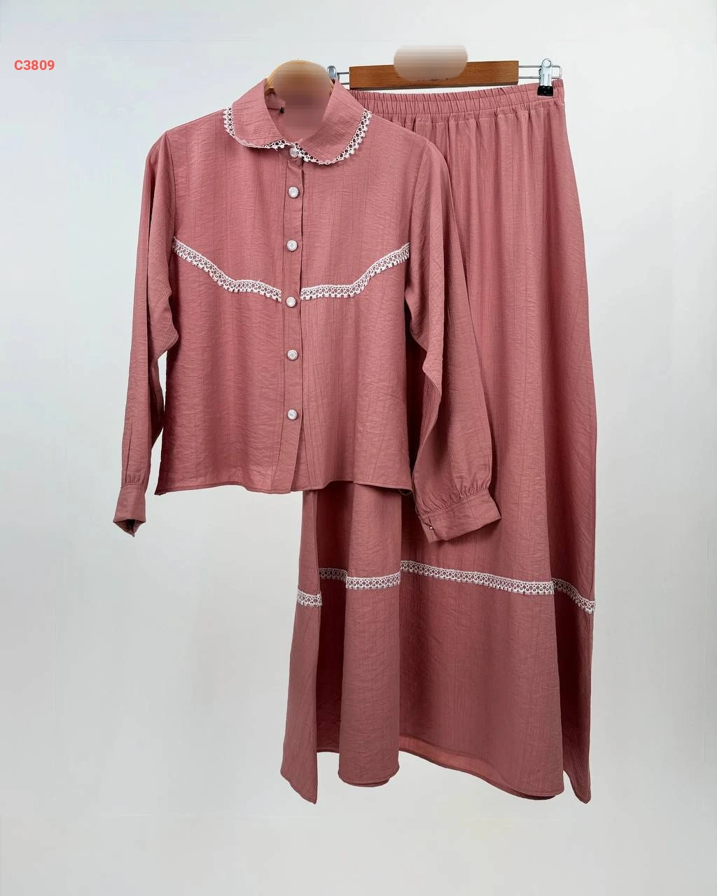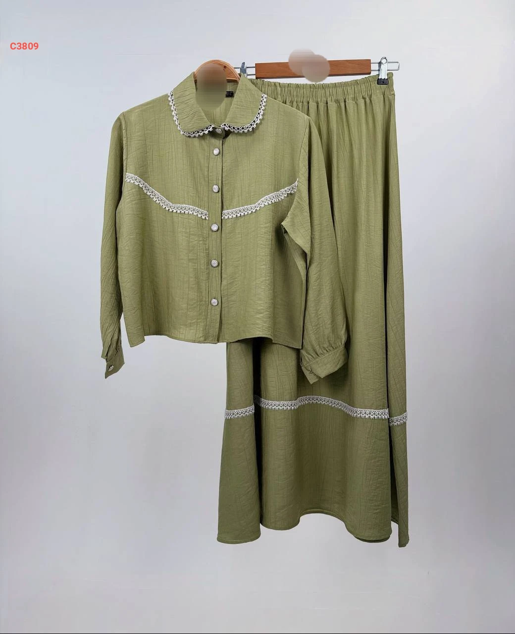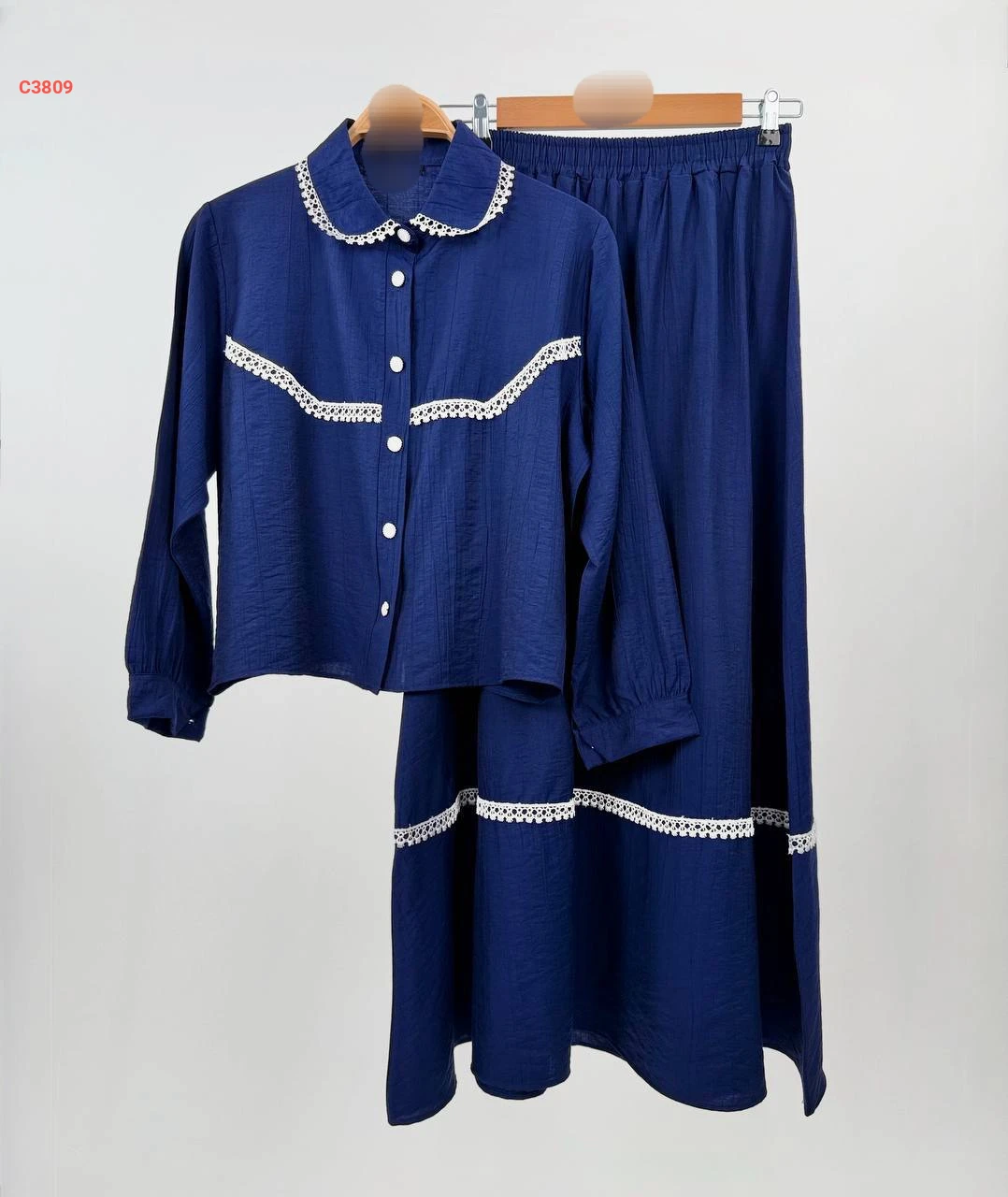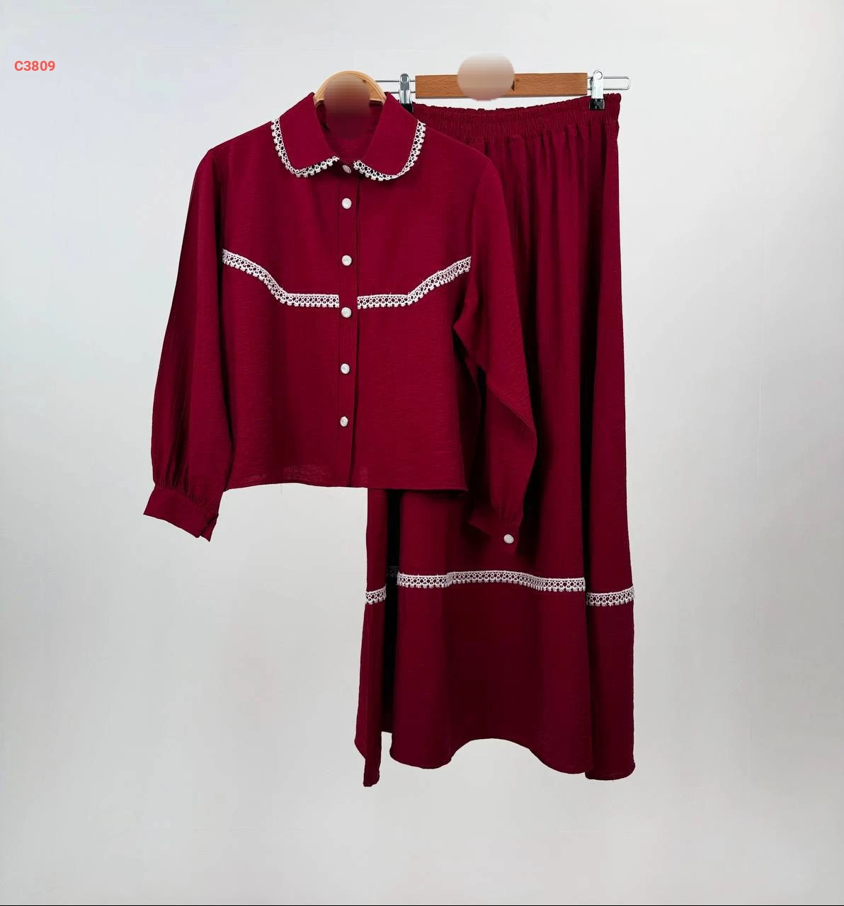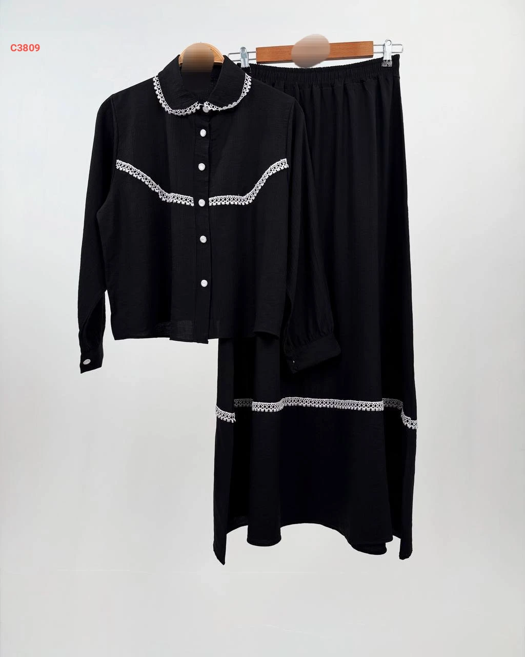 طقم تنورة طويل مطرز