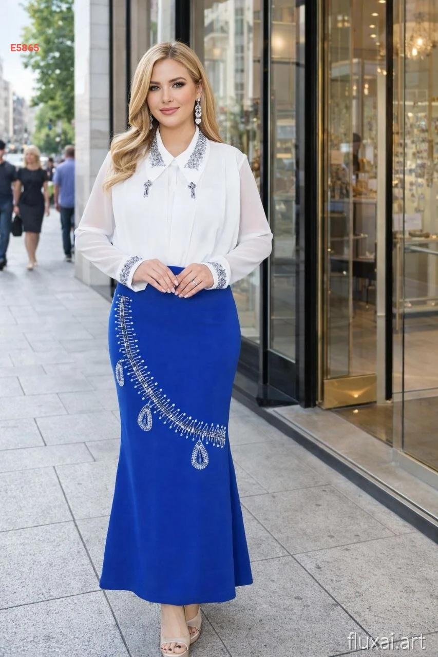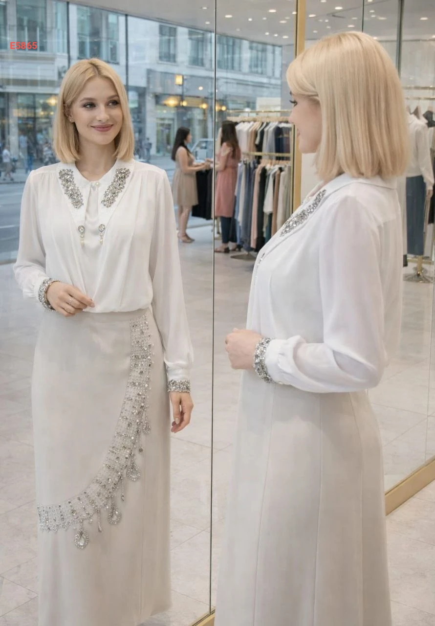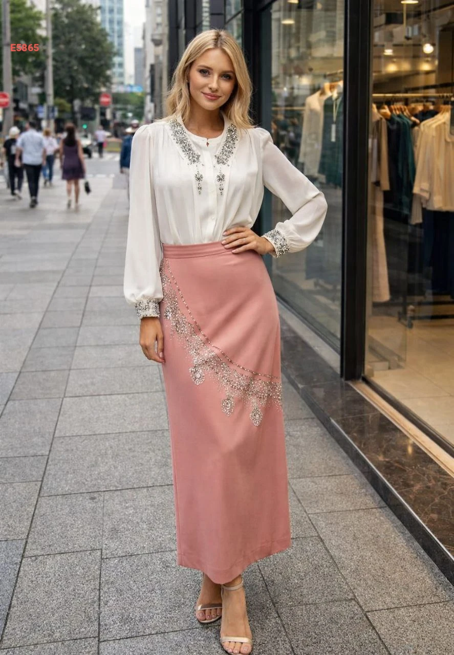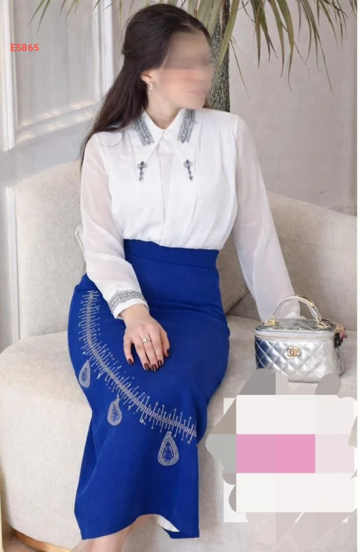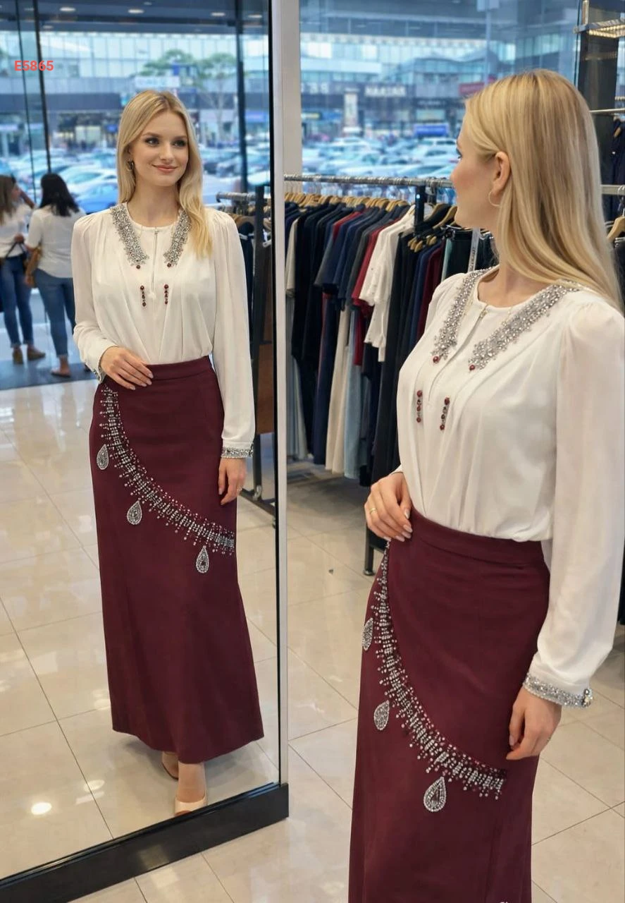 طقم تنورة طويلة مطرزة وبلوزة شيفون