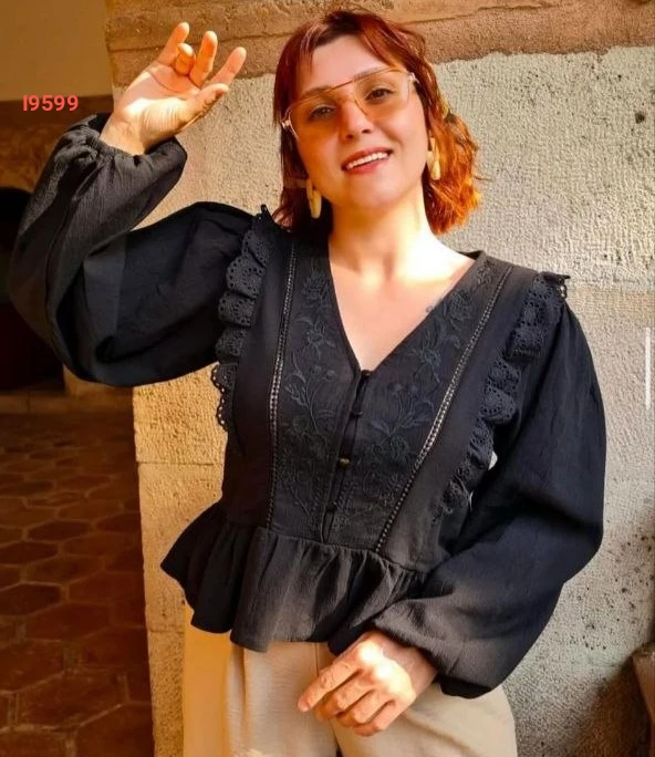 بلوزة كم طويل مطرزة