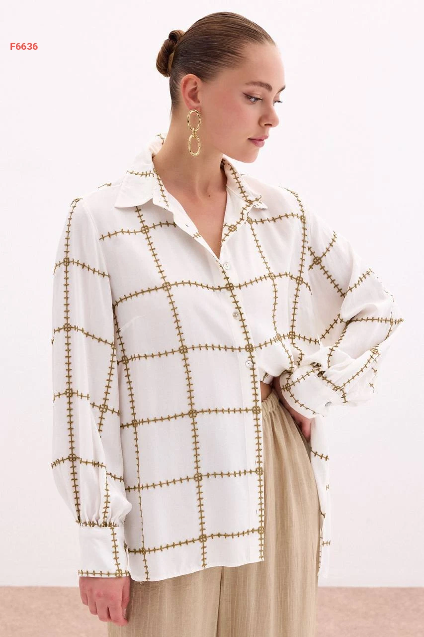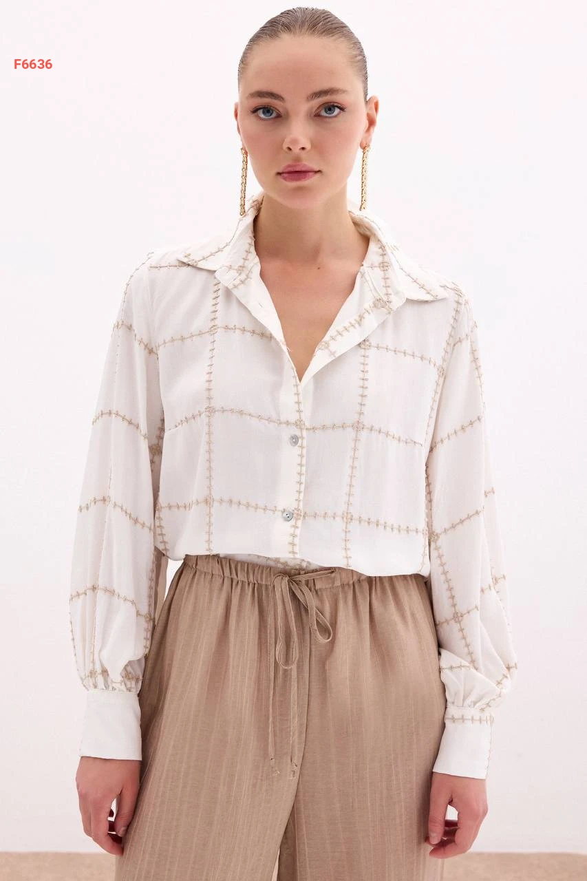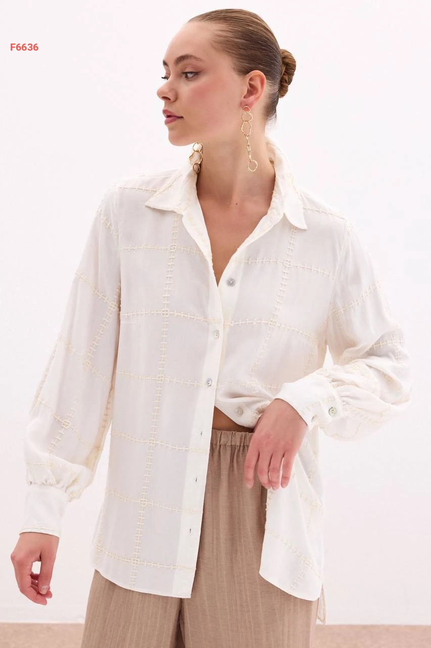 قميص كم طويل مطرز