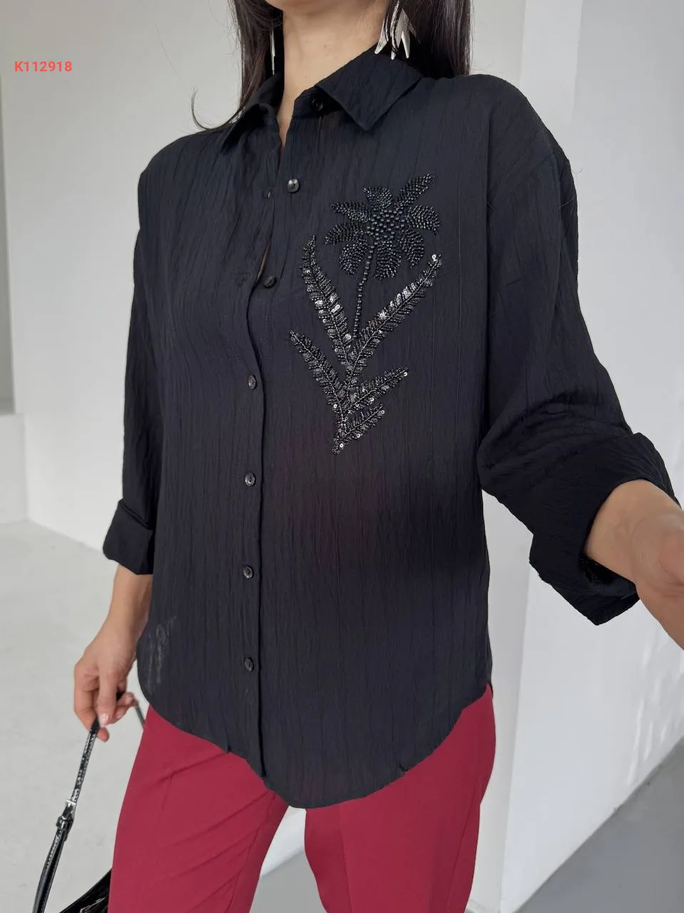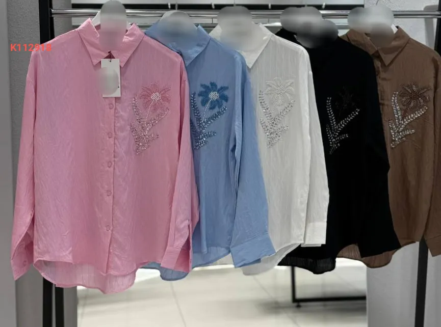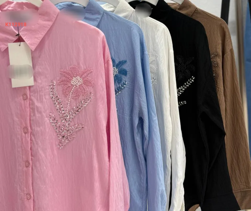 قميص كم طويل مطرز