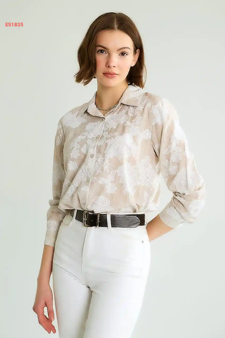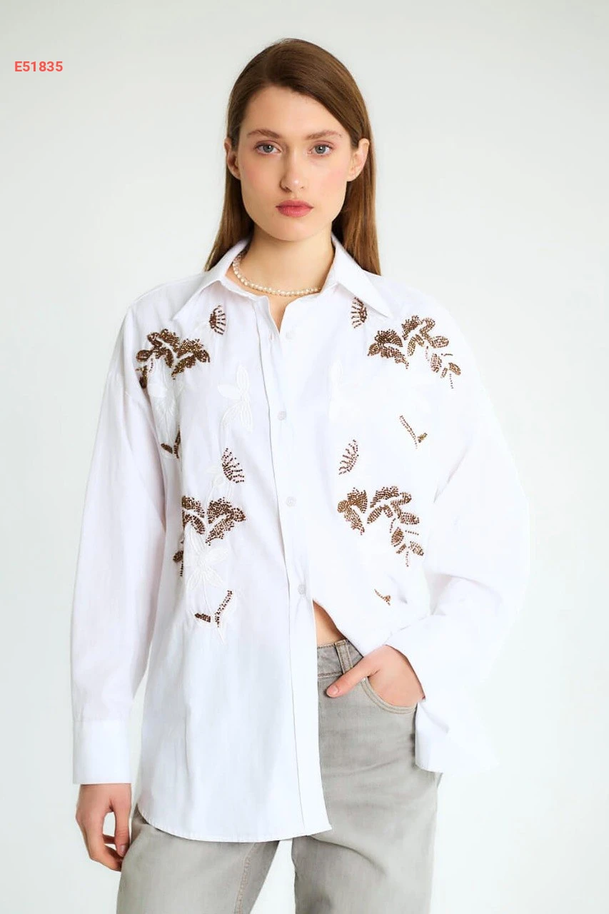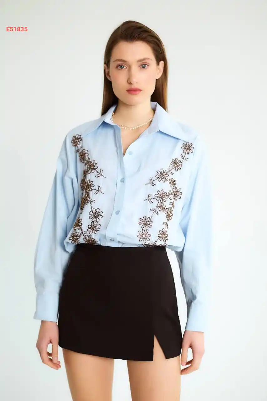 قميص كم طويل مطرز