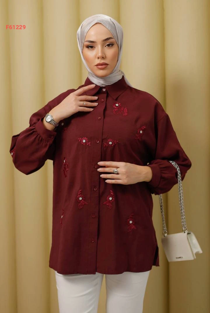 قميص كم طويل مطرز
