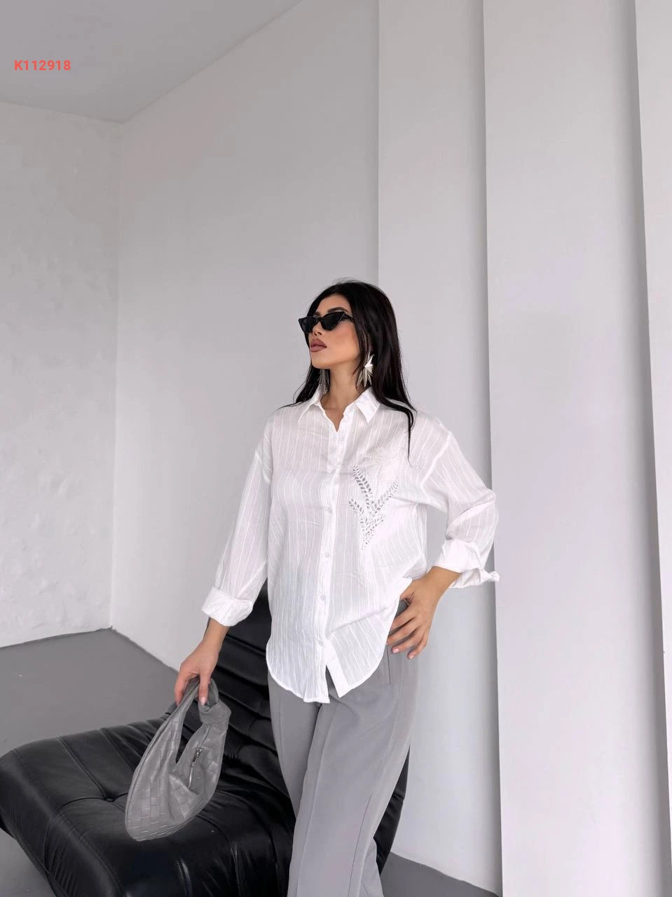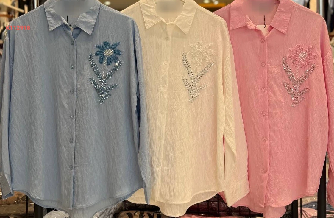قميص كم طويل مطرز