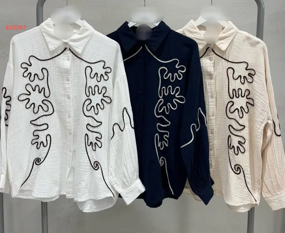 قميص كم طويل مطرز