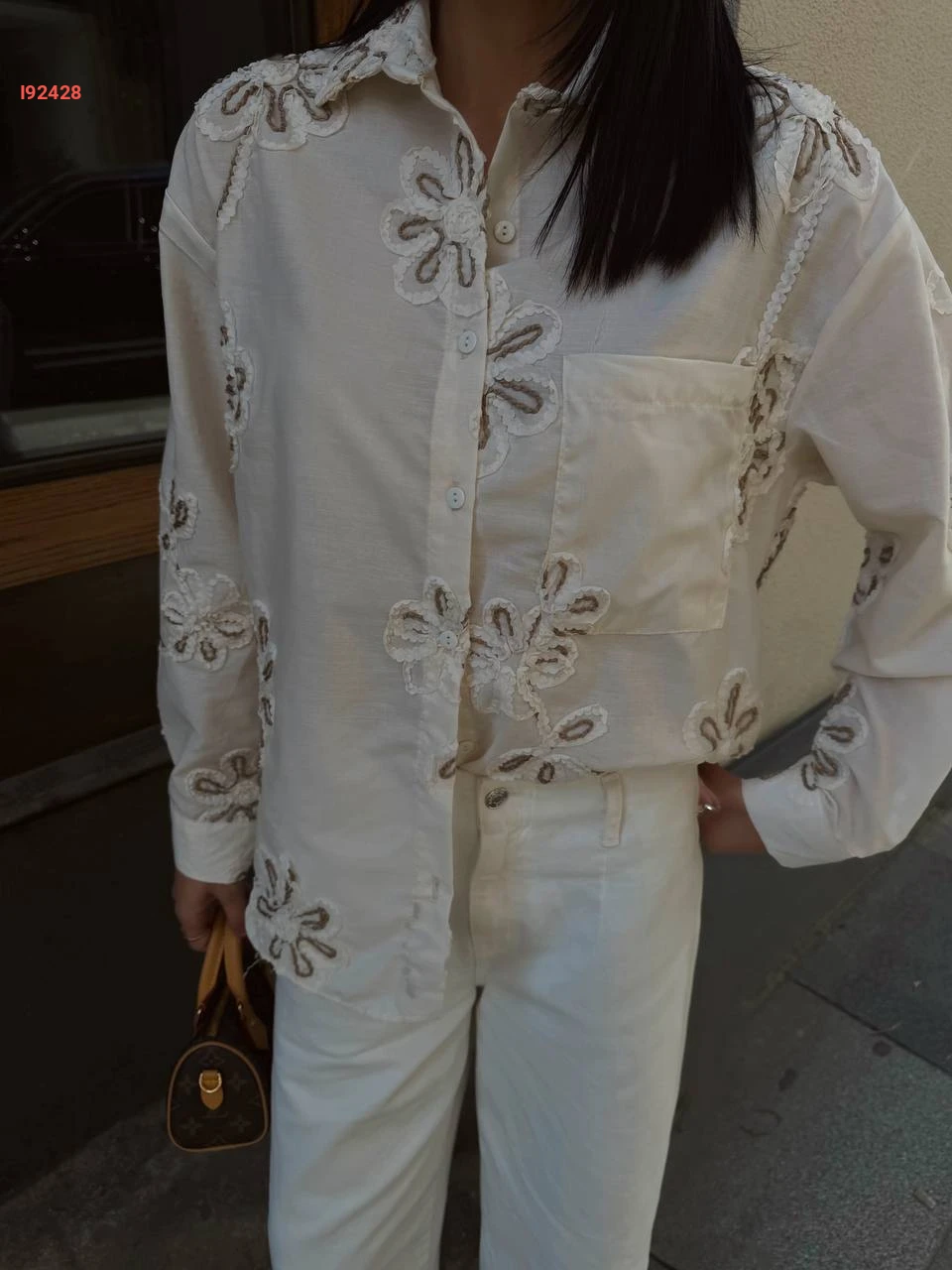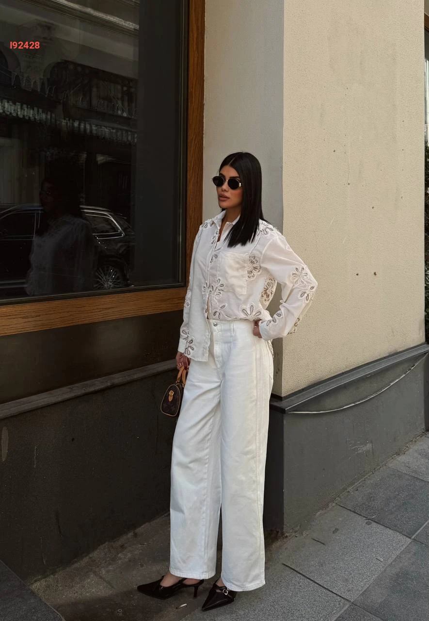 قميص كم طويل مطرز